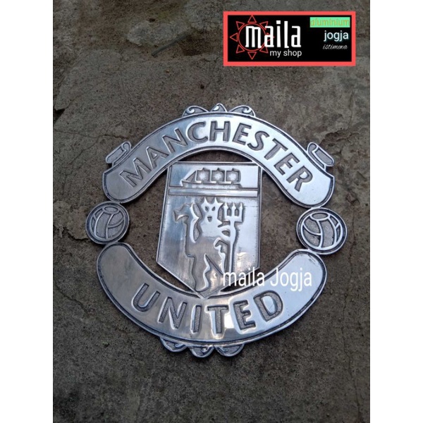 Logo club Manchester united hiasan dinding sepak bola mu m.u logam aluminium