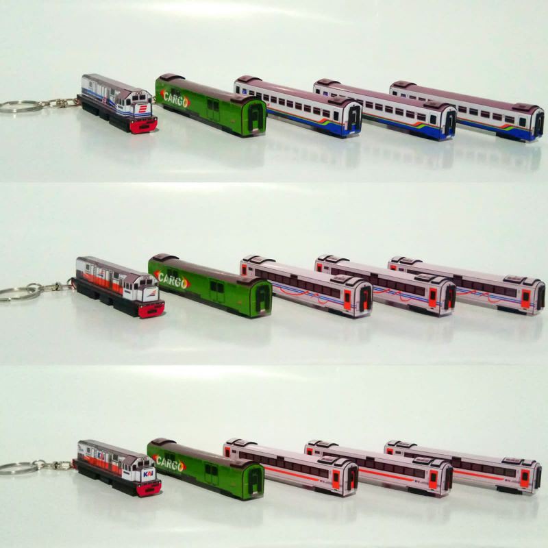 Lokomotif Gantungan Kunci Kereta Api 3D + gerbong