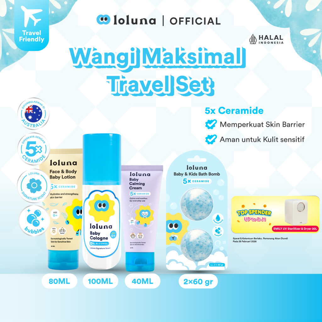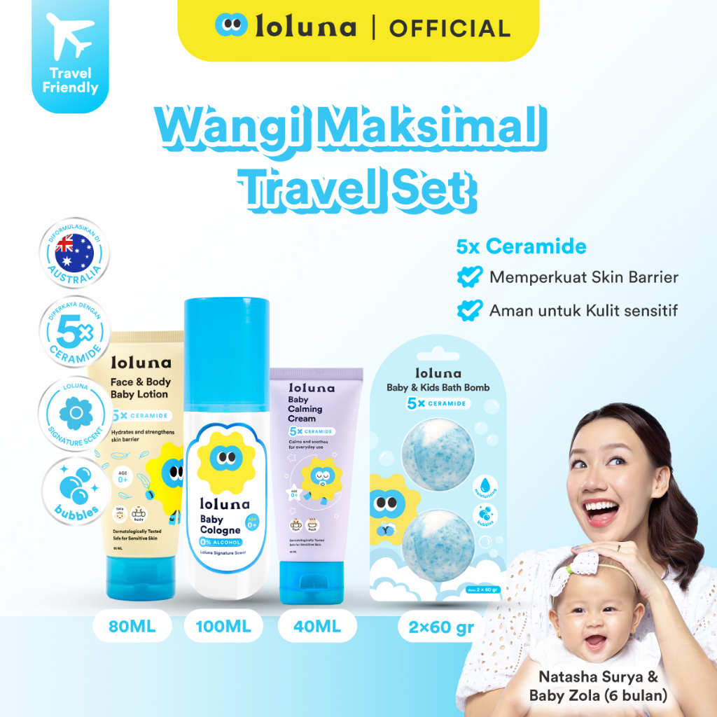 Loluna Wangi Maksimal Set – Baby Cologne, Face & Body Lotion, Calming Cream | 5X Ceramide, Non Alkohol, Aman untuk Newborn & Kulit Sensitif
