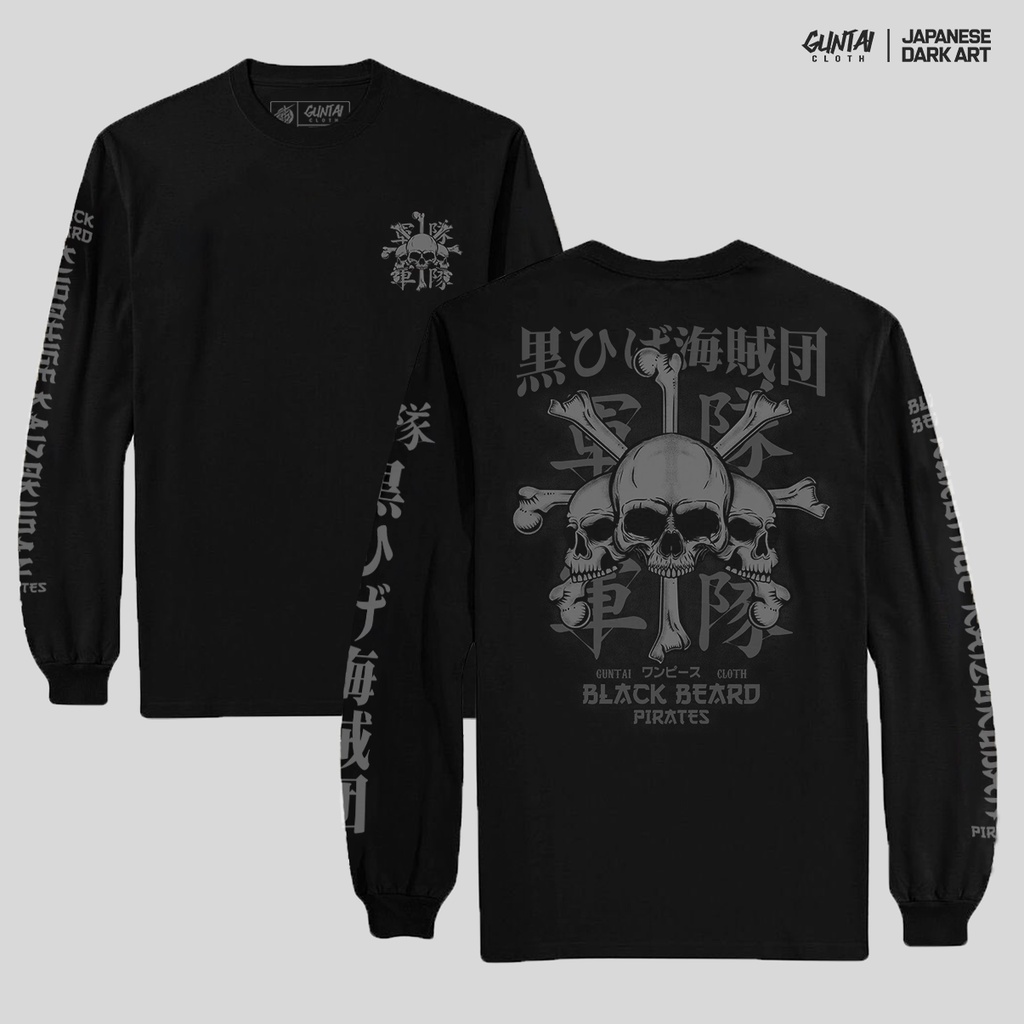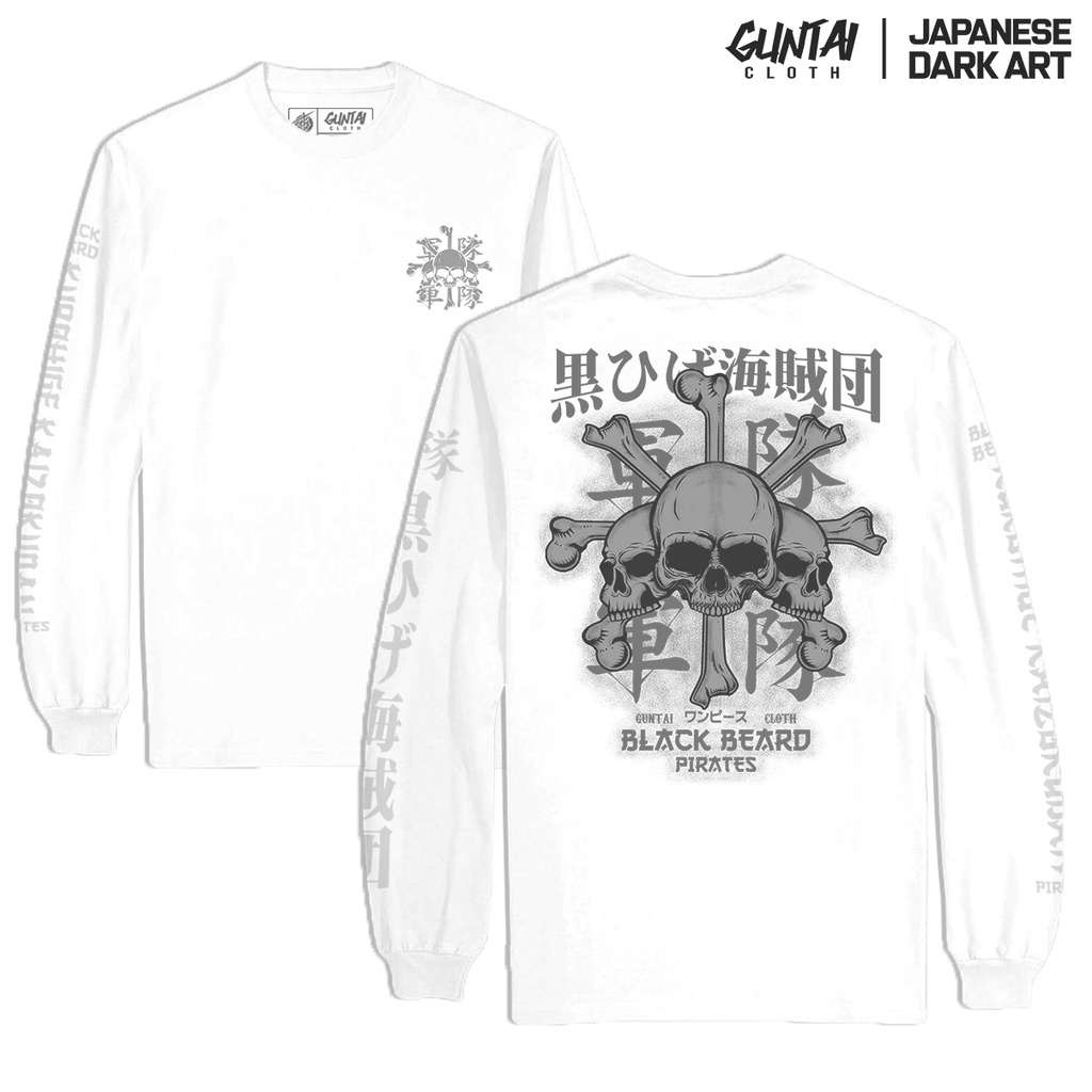 GUNTAI CLOTH Kaos Pria Distro Original 100% - Kaos Lengan Panjang Tshirt Longsleeve One Piece BLACKBEARD Cotton Combed 24s Sablon Plastisol Terbaik Handmade Desain Manual