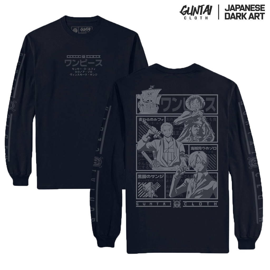 GUNTAI CLOTH Kaos Pria Distro Original 100% - Kaos Lengan Panjang Tshirt Longsleeve One Piece PIRATECREW Cotton Combed 24s Sablon Plastisol Terbaik Handmade Desain Manual