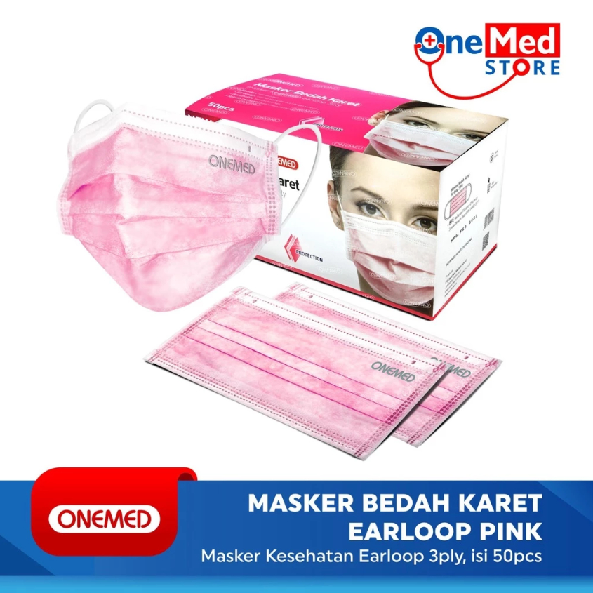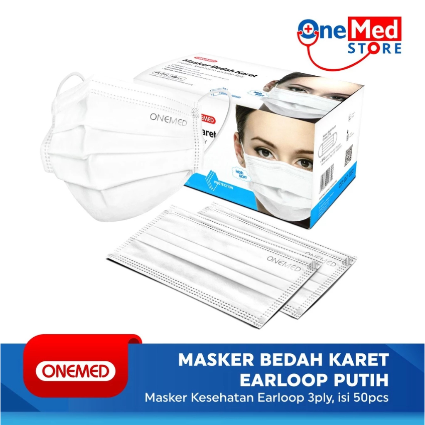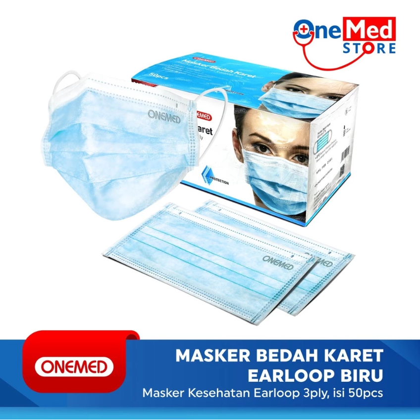 Masker Medis Steril Earloop 3ply Onemed Model Karet Telinga - 1 Box isi 50s