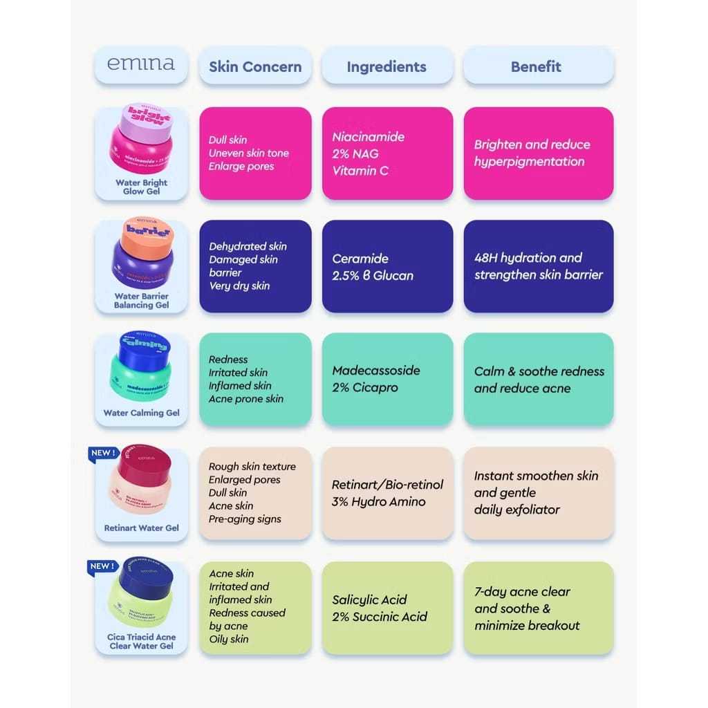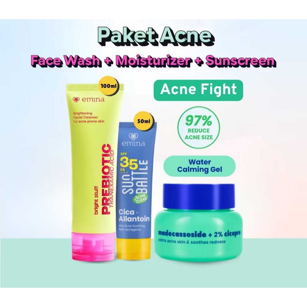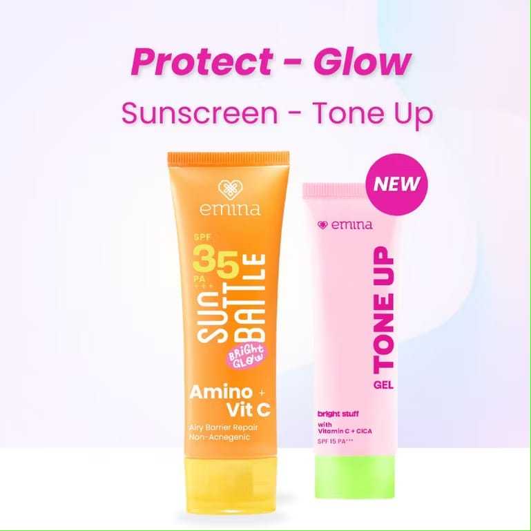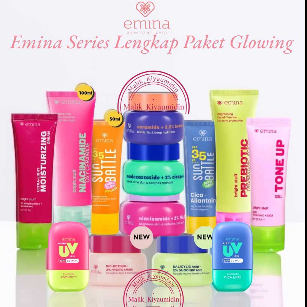 Emina Skincare Paket Glowing Lengkap All Varian FaceWash, Moisturizer Gel,Cream, Sunscren,ToneUp Gel