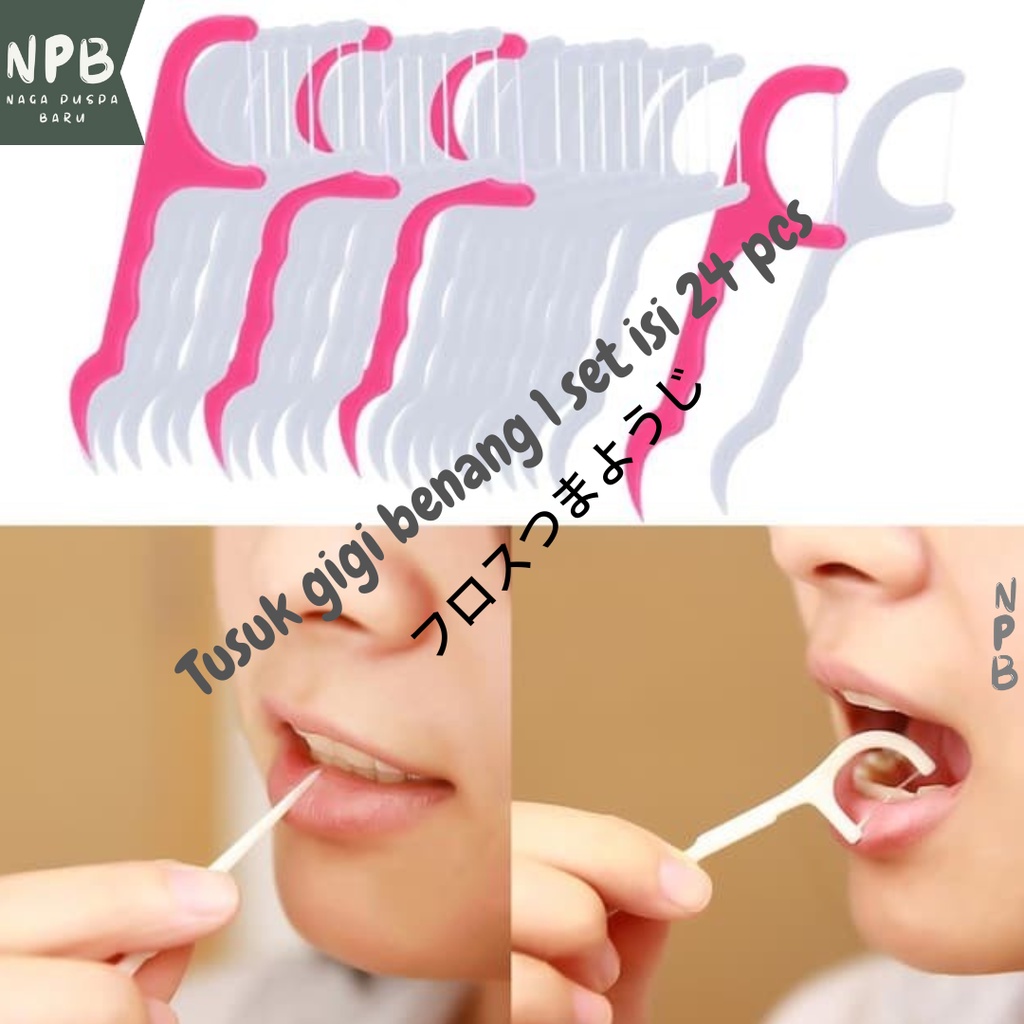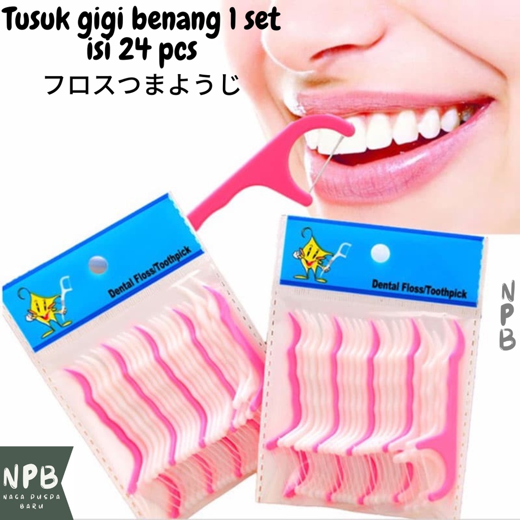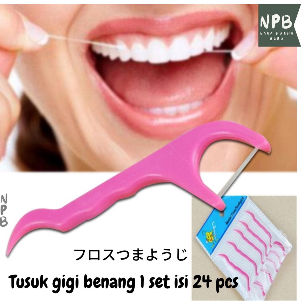 Tusuk gigi benang 1 set isi 24 pcs - Dental floss toothpick