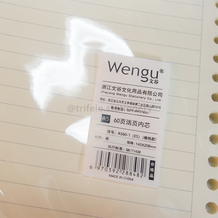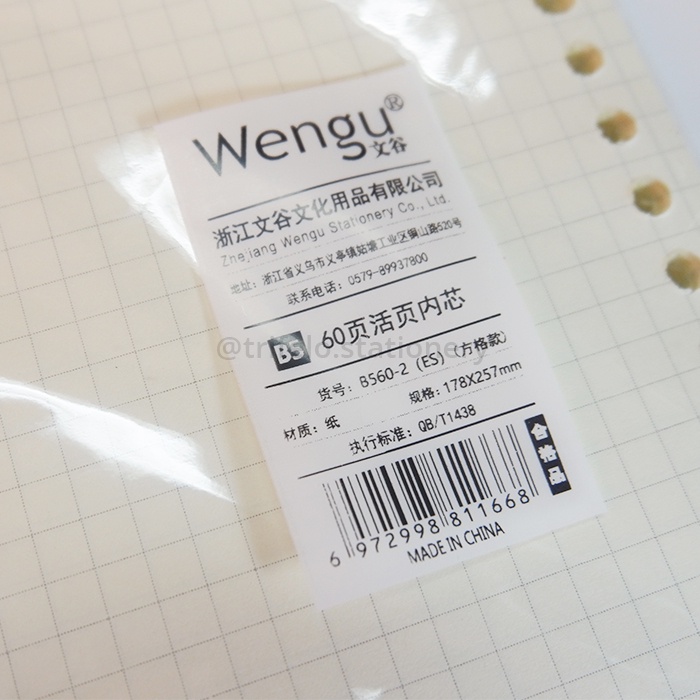 Loose Leaf Binder Paper A5 B5 Ruled Grid Dotted Wengu isi 60 lbr
