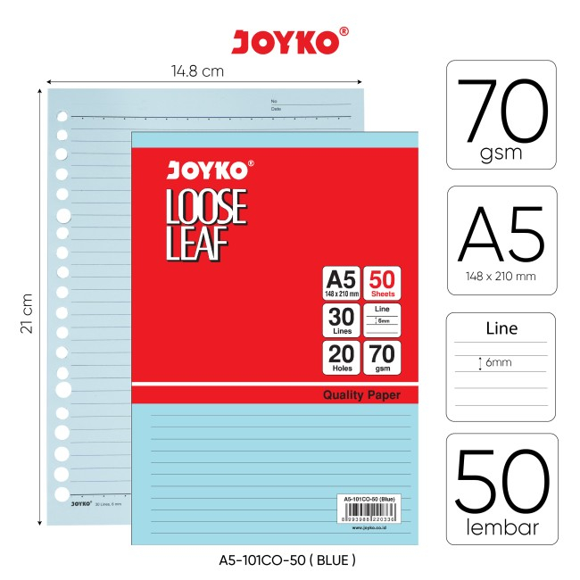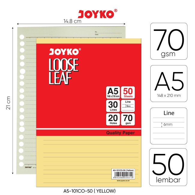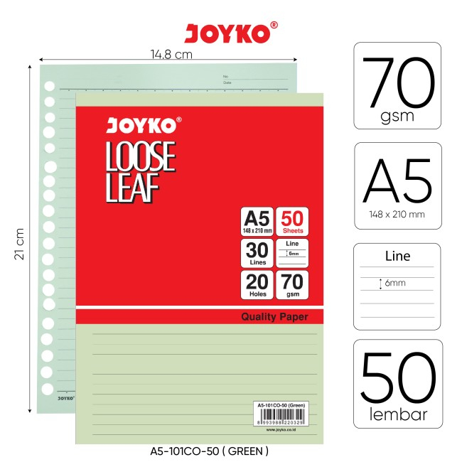Loose Leaf Color JOYKO A5 50 Lembar Isi Kertas File Binder Warna A5 Refil Binder Colour Isi 50 Lembar