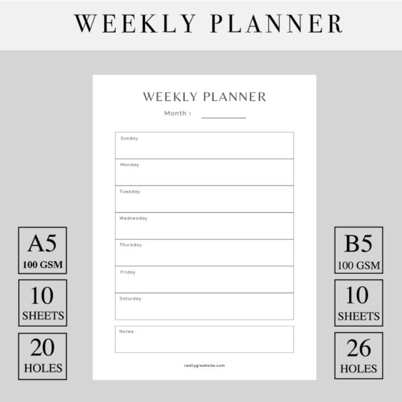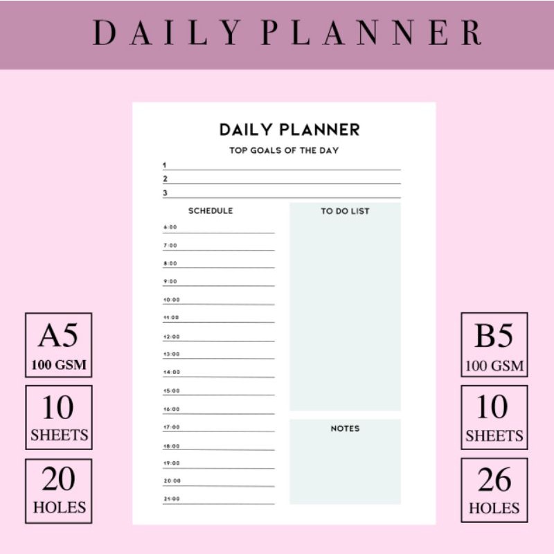 Loose Leaf Daily Weekly Mothly Planner Isi Binder A5/B5 20 lubang 26 lubang