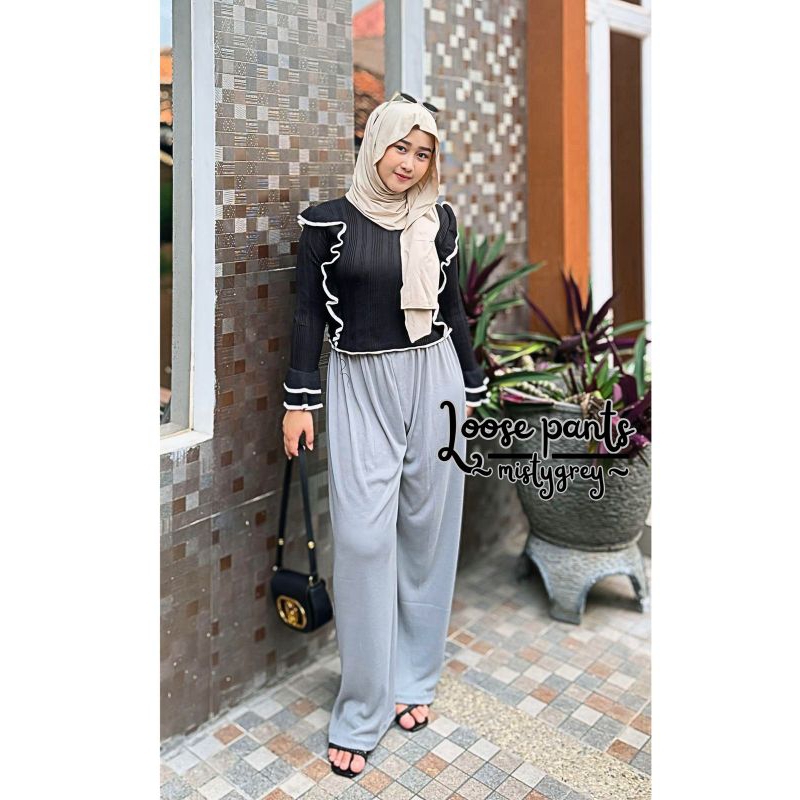Loose Pant Rajut Jumbo Kulot Highwaist Suprt Jumbo