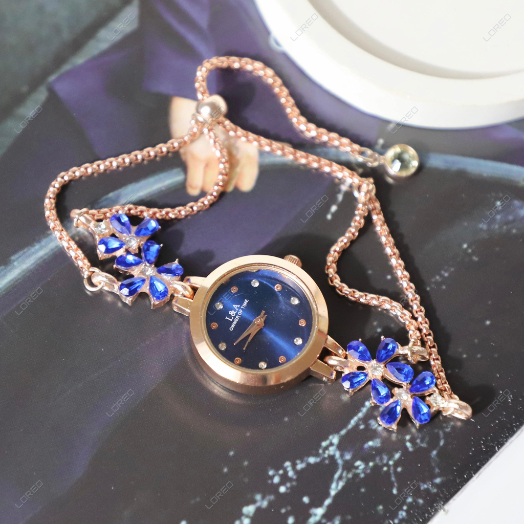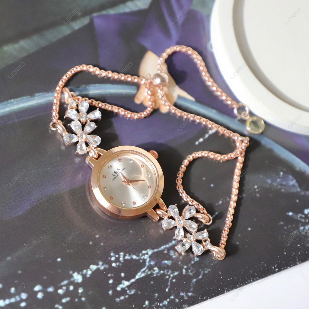 Loreo - Jam Tangan Serut Strap Motif Bunga Jam Tangan Analog Wanita Stainless Steel