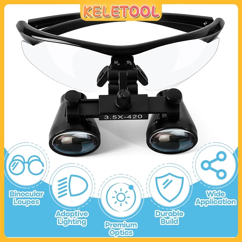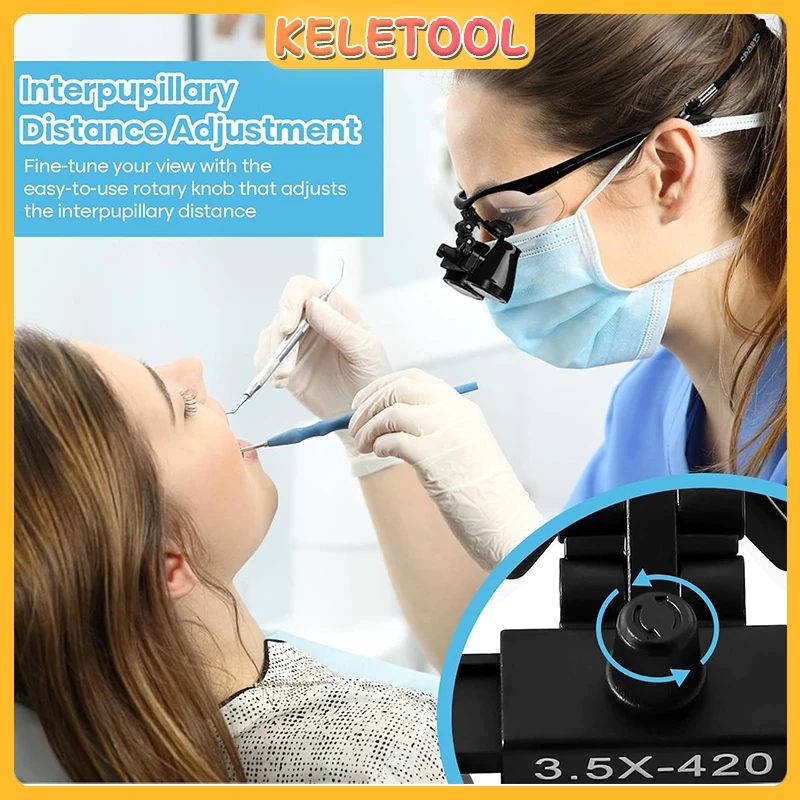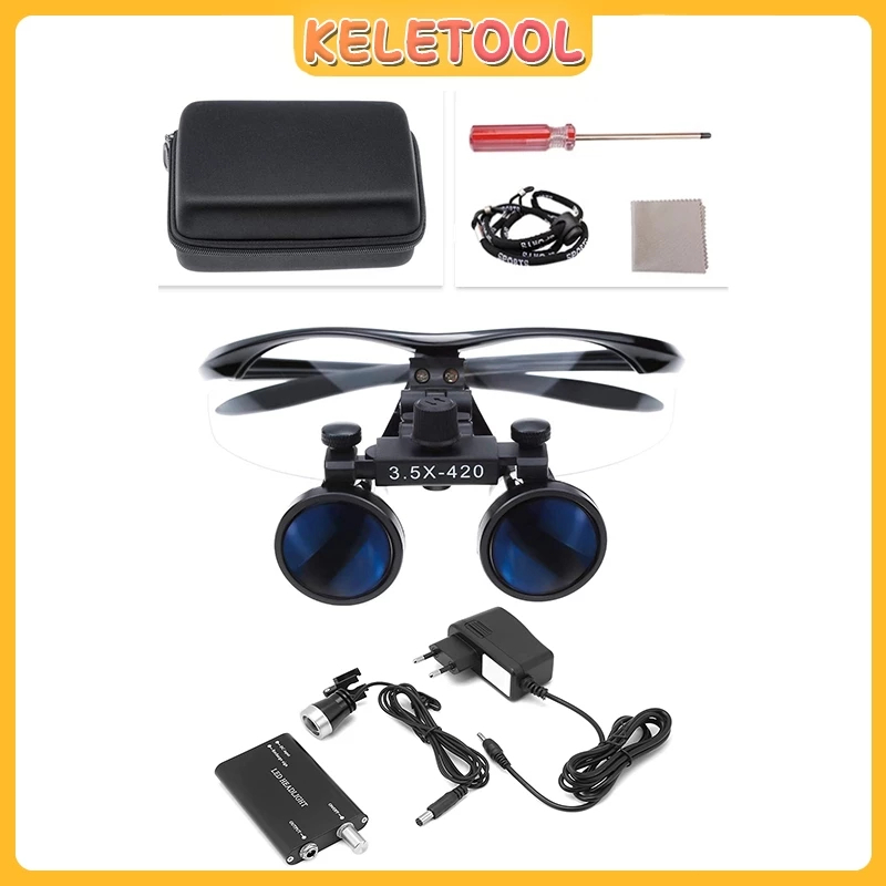 Loupes Gigi Kaca Pembesar Gigi Lab Teropong Pembesaran Medis 3.5x Lampu Depan Lampu Secara Terpisah Kaca Pembesar Dokter