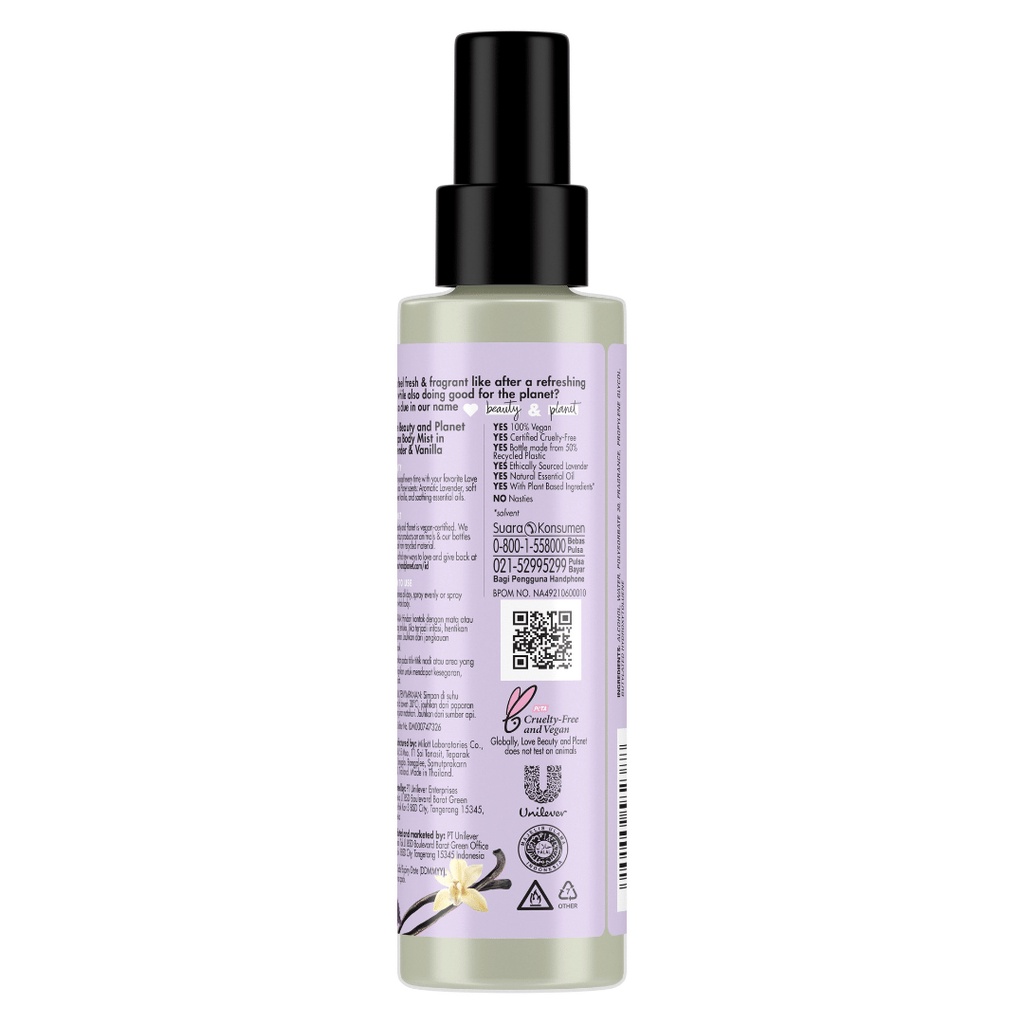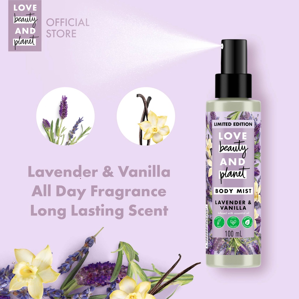 Love Beauty & Planet Body Mist Fragrance Lavender & Vanilla Natural Essential Oil 100ML