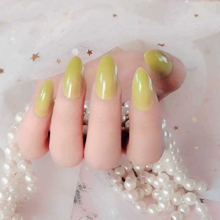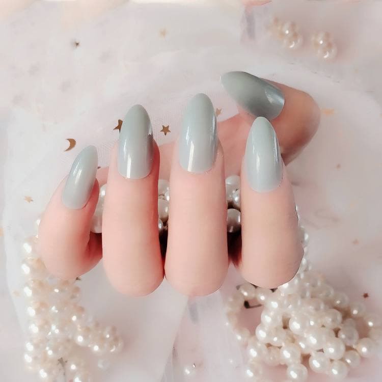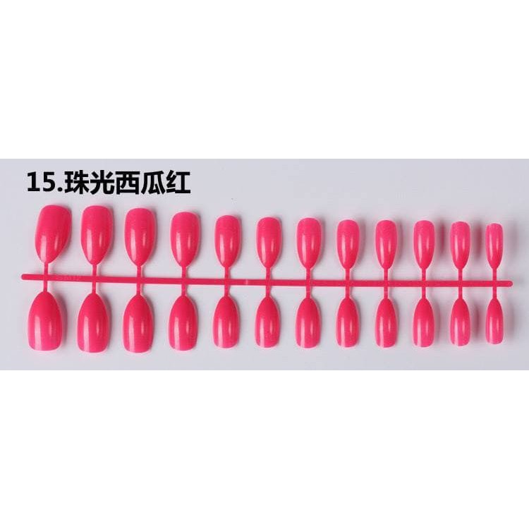 Lovefashion [COD] 24pcs Kuku Palsu False Nail Art Glossy Nude Almond Drop Shape Press On Fake Fingernail Stilleto