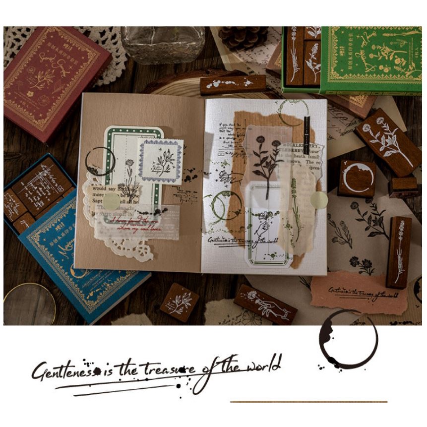 Lovely | W04 - 6pcs/set DIY Wooden Garden Series Rubber Stamp Stempel Kayu Vintage DIY bullet Journal, Scrapbook, Diary Decoration Stamps