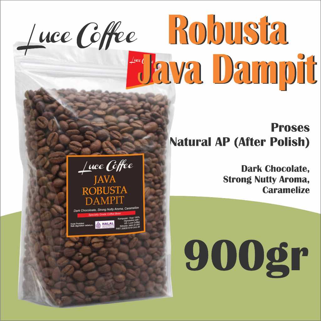Luce Coffee, Kopi Java Robusta Dampit 900gr - Biji sangrai atau bubuk.