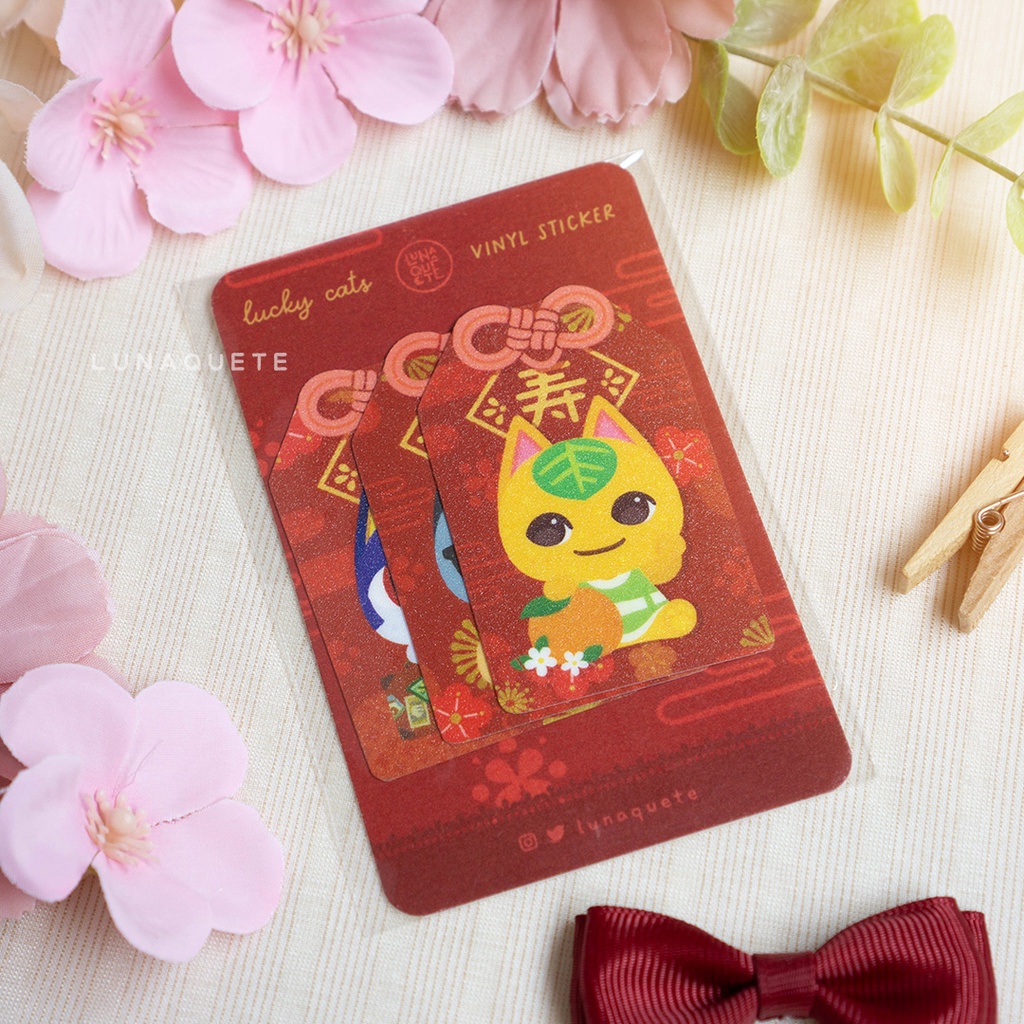 Lucky Cats Omamori Tangy Raymond Rover ACNH Animal Crossing Cute Glitter Laminated Vinyl Sticker