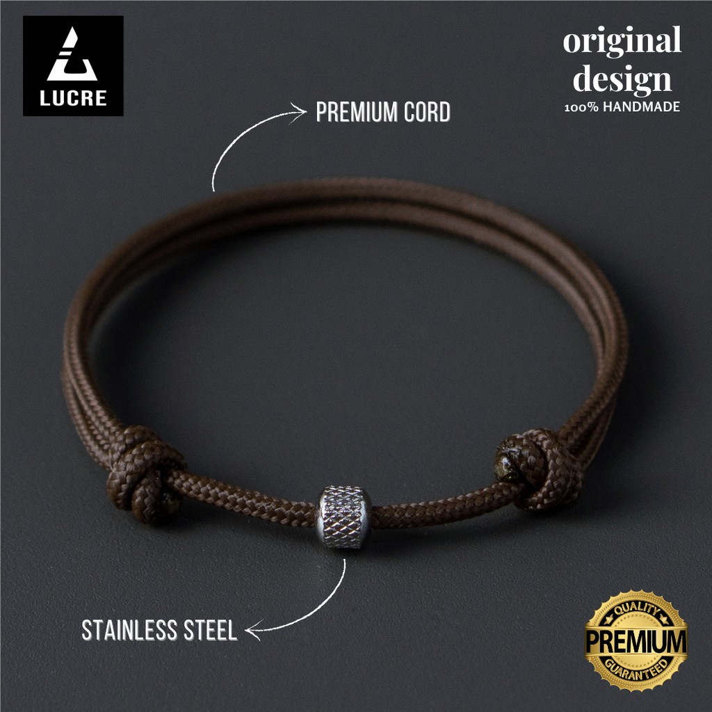 Lucre Gelang Tali Pria Original - BROWN | Premium Cord Bracelet - Titanium Stainless Steel Anti Karat | Gelang Cowok Minimalis Simple Keren