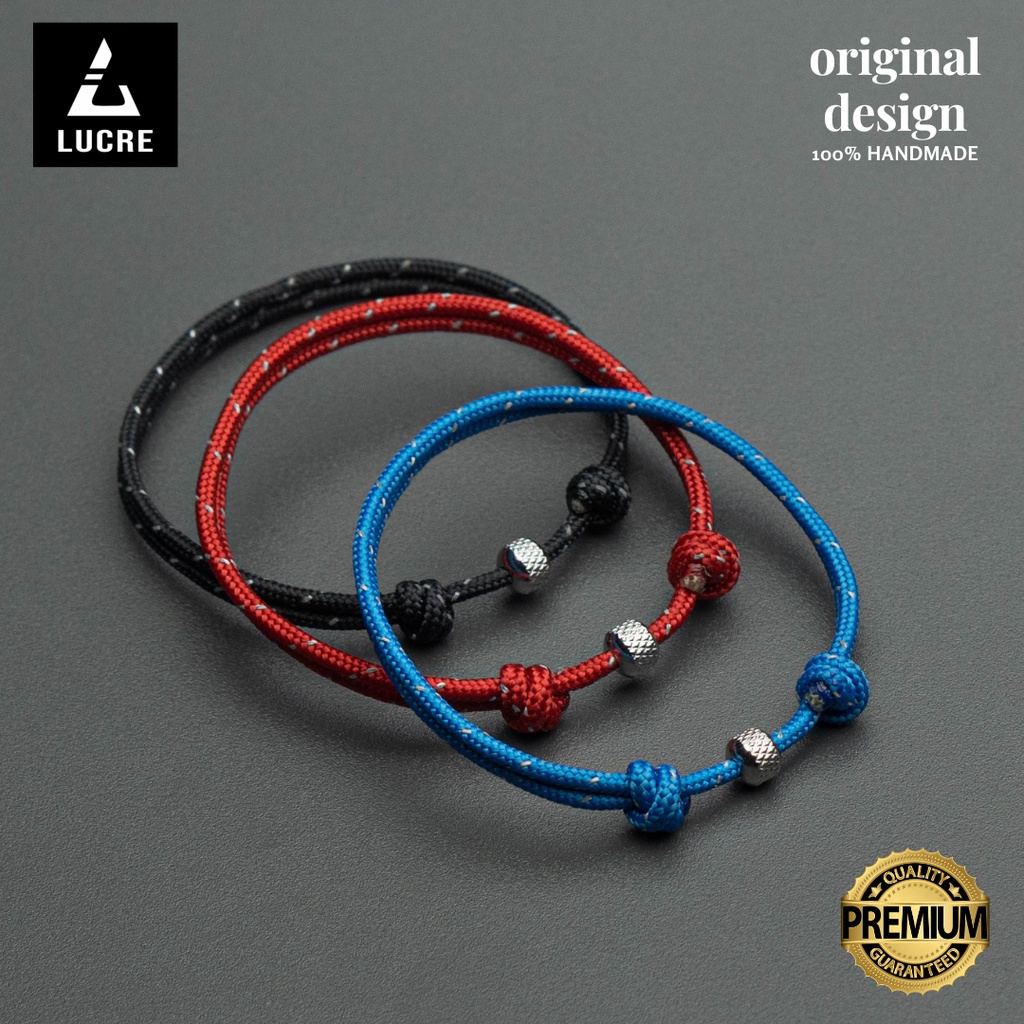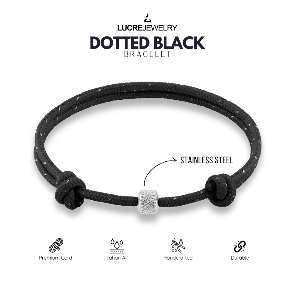 Lucre Gelang Tali Pria Original - DOTTED BLACK | Premium Cord Bracelet - Titanium Stainless Steel Anti Karat | Gelang Cowok Minimalis Simple Keren