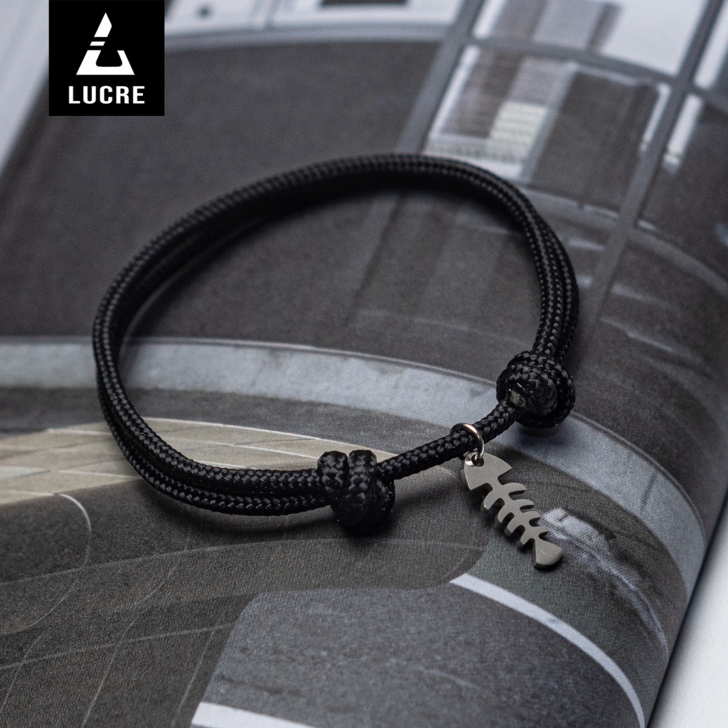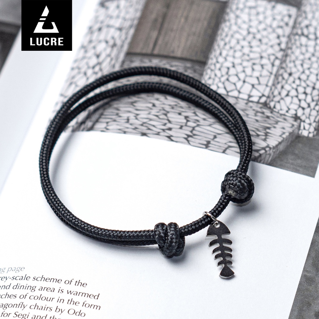Lucre Gelang Tali Pria Original - FISHBONE | Premium Cord Bracelet - Titanium Stainless Steel Anti Karat | Gelang Cowok Minimalis Simple Keren
