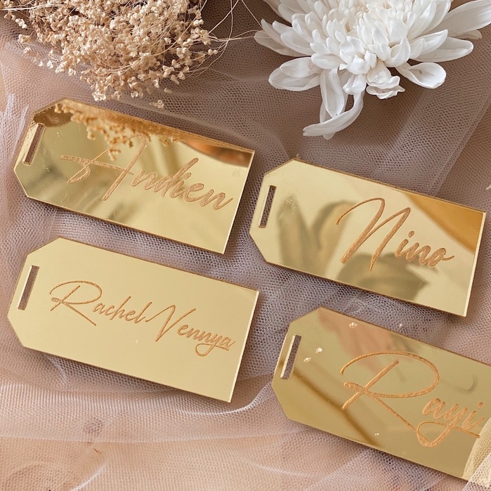 Luggage Tag Custom Nama / Gantungan Koper / Gantungan Tas / Gantungan ID Card / Tag Koper / Gantungan Kunci Nama / Akrilik Custom / Gantungan Hampers / Tag Nama Custom / Gantungan Tas / Bag Tag Akrilik Gold / Custom Nama / Name Tag / ID Card