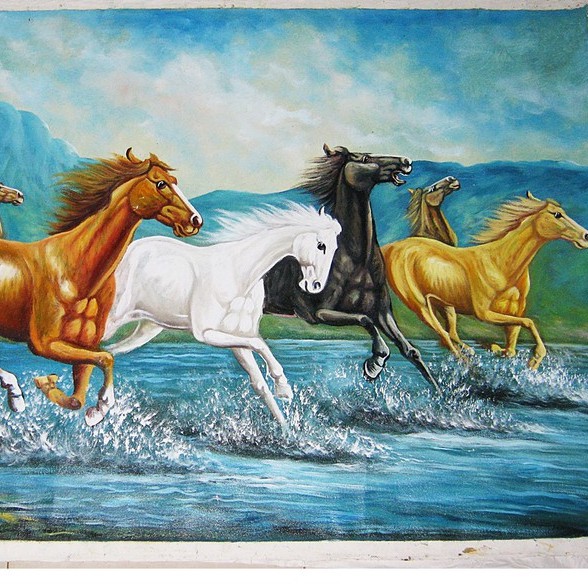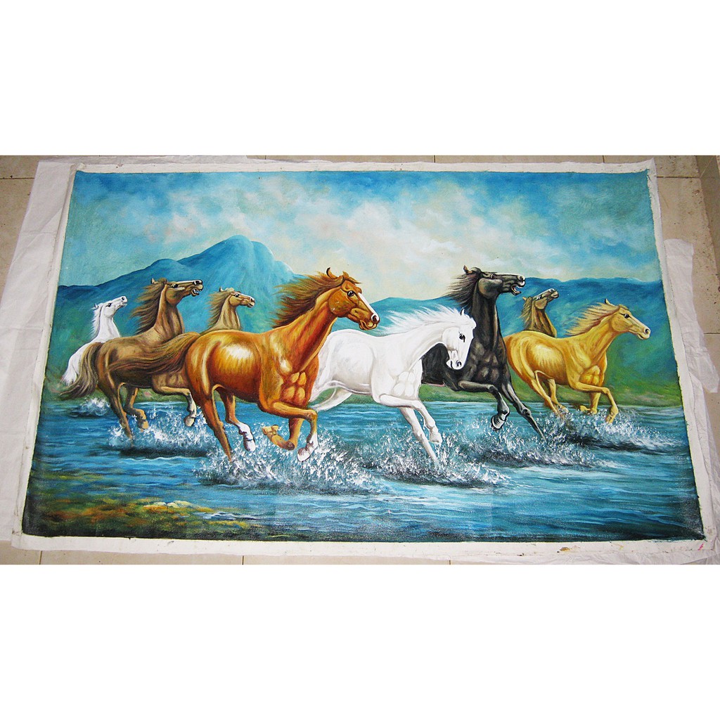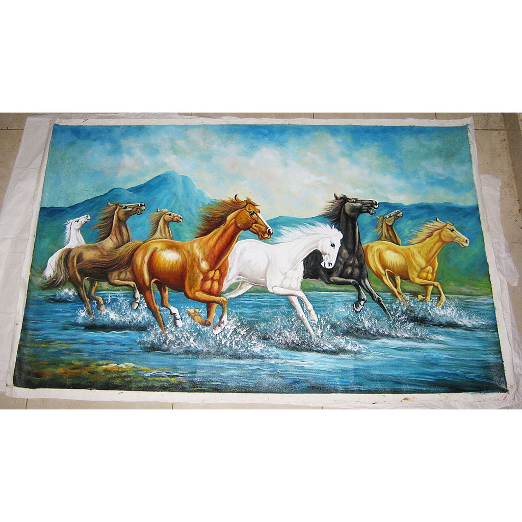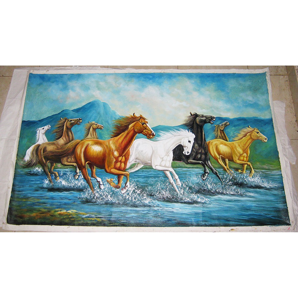 Lukisan 8 Kuda Berlari Nuansa Realis