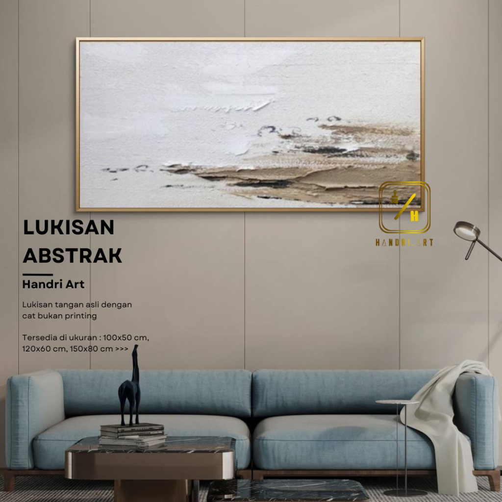 Lukisan Abstrak Aesthetic Elegant Putih Gold