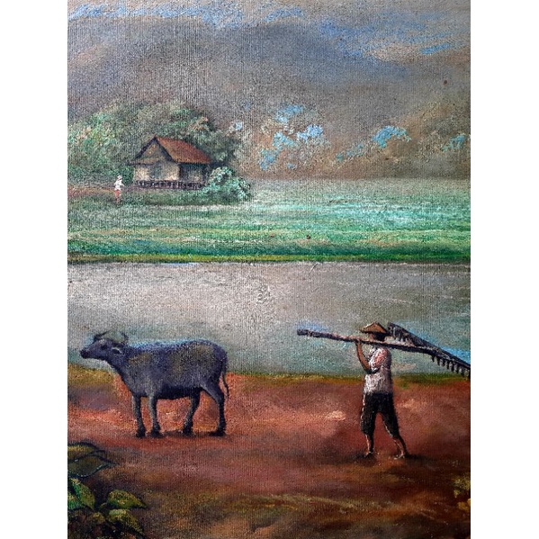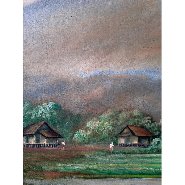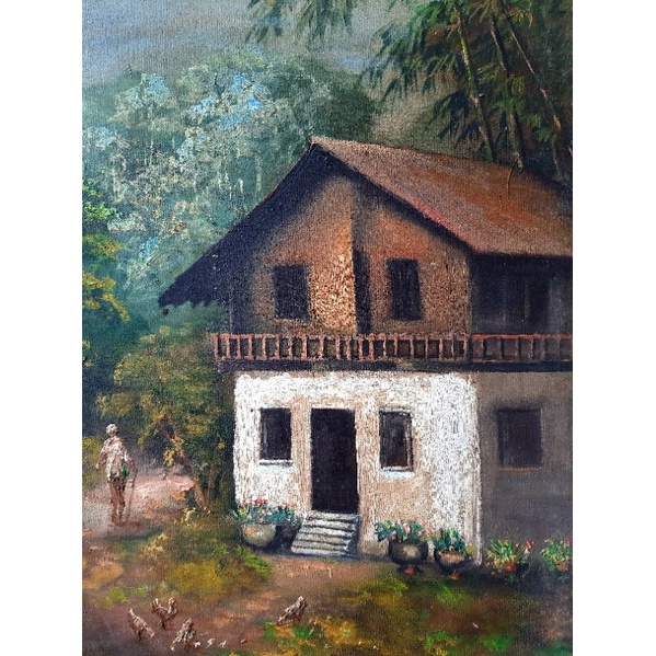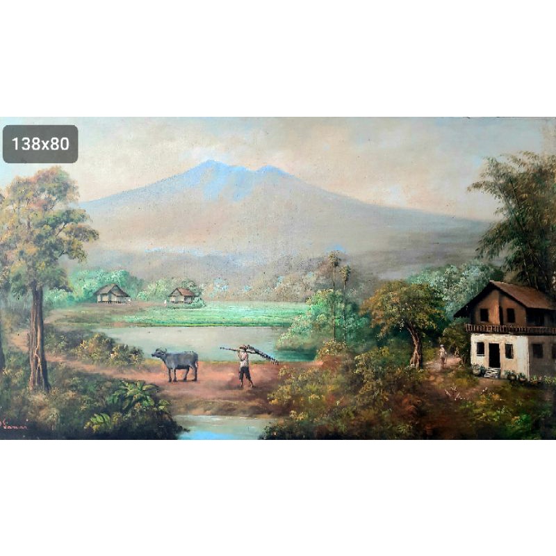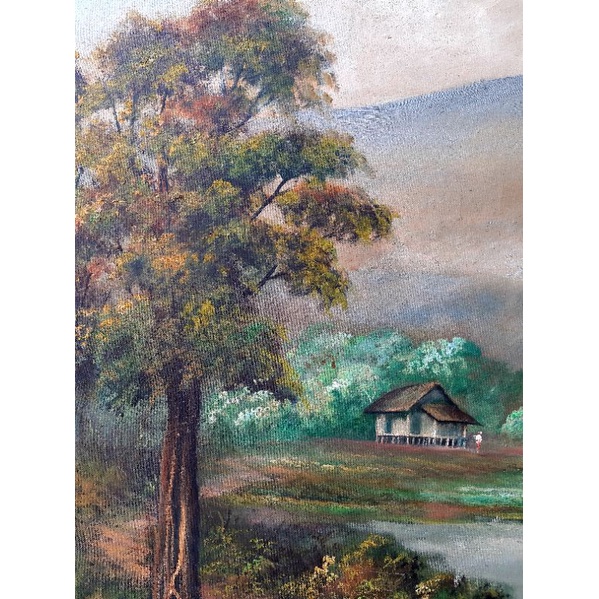 Lukisan Antik Pemandangan Alam Desa Pegunungan