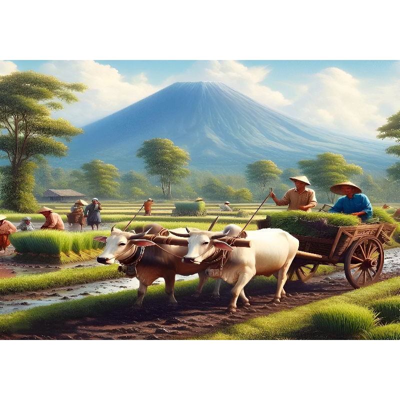 Lukisan Cetak, PEMANDANGAN PEDESAAN, Ukuran JUMBO, 100x70cm & 150x100cm & 200x100cm/Poster Cetak/Hiasan Dinding/TANPA BINGKAI