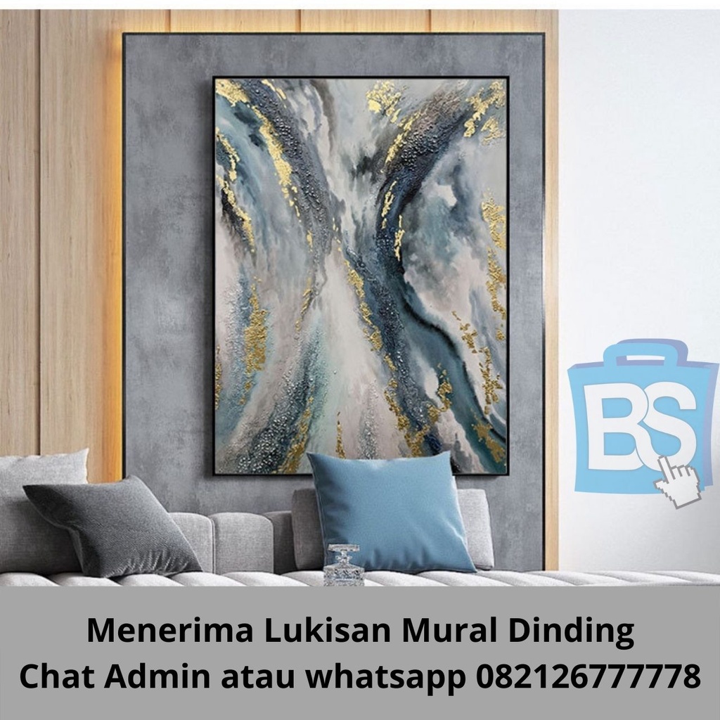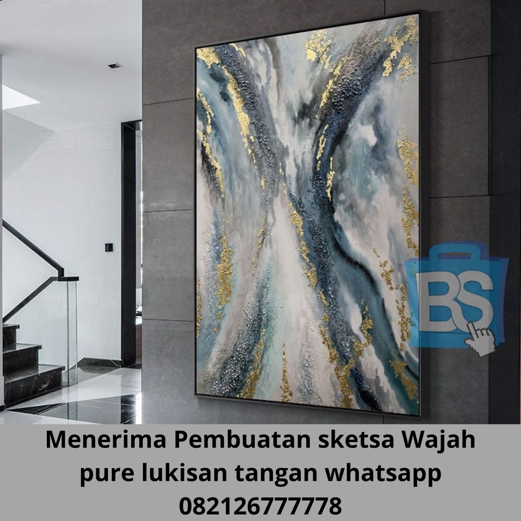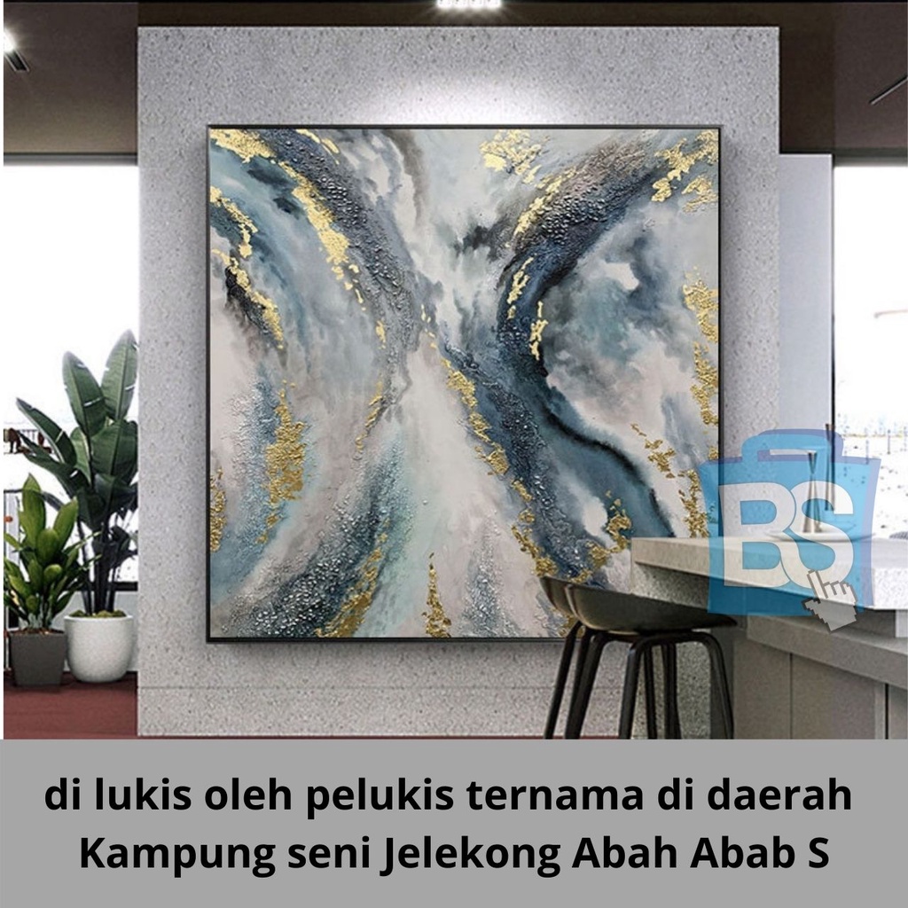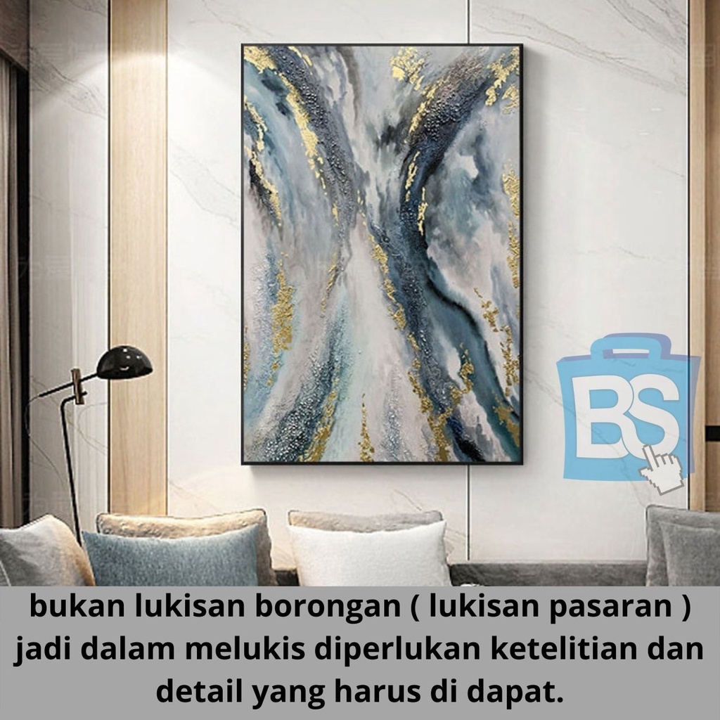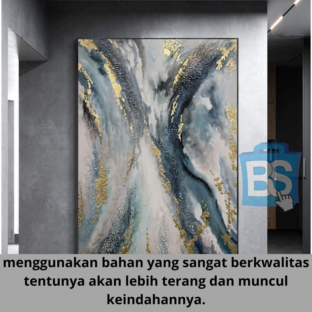 Lukisan Daun Emas Besar Lukisan Abstrak, Lukisan Abstrak Biru Asli, Lukisan Besar di Atas Kanvas, Seni Abstrak Besar, Dekorasi Dinding Kantor, Seni Dinding