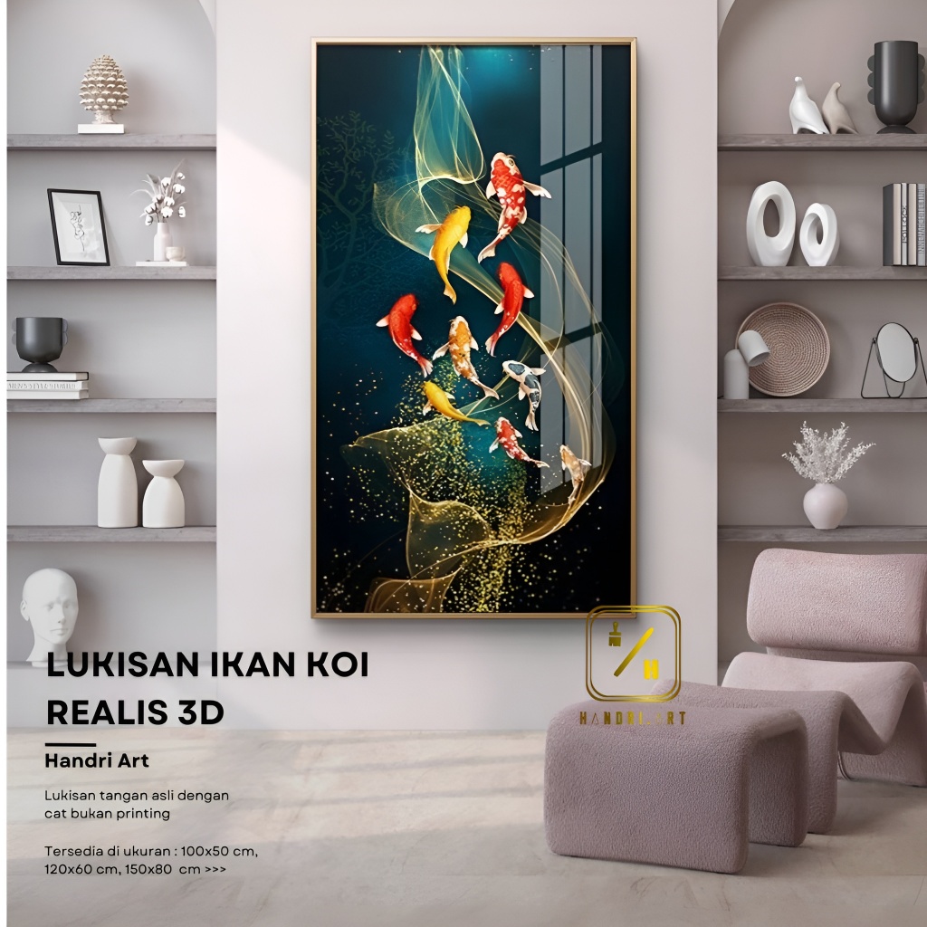 Lukisan Ikan Koi Minimalis Realis Timbul full Texture | lukisan koi mewah |lukisan koi berdiri | lukisan koi minimalis | lukisan abstrak koi elegant | lukisan ikan koi simple