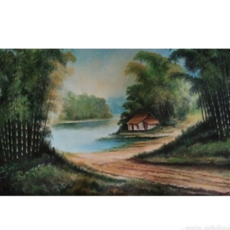 Lukisan Kampung Bambu 60 x 100 cm