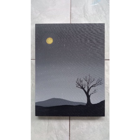 Lukisan Kanvas Canvas Pemandangan Malam Ranting Pohon / Lukisan Dekorasi Hiasan Pajangan Dinding Kamar Ruang Tamu Rumah / Lukisan Aesthetic Minimalis Keren Handmade Asli Hasil Tangan Ukuran 30x40cm