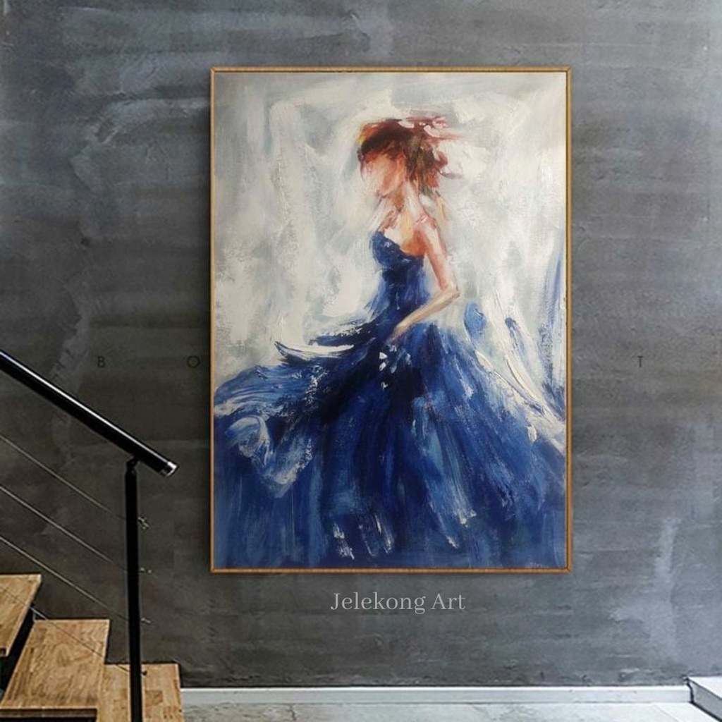 Lukisan MInimalis Modern Abstrak Wanita Bergaun Asli Lukisan Tangan BONUS FRAME