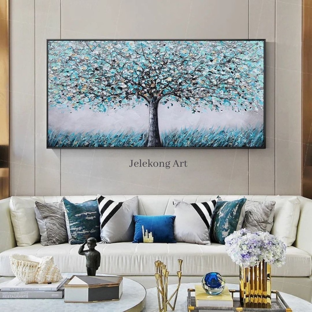 Lukisan Minimalis Modern Pohon Asli Lukisan Tangan Bonus Frame