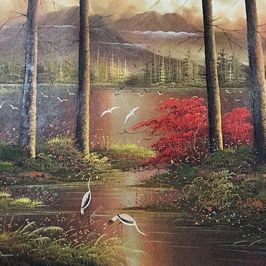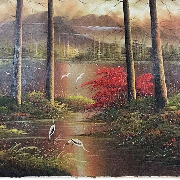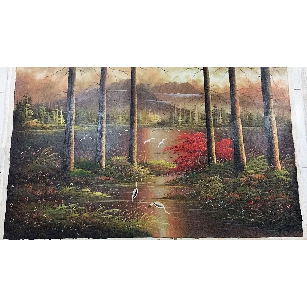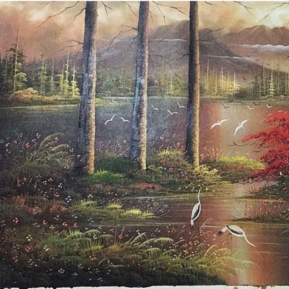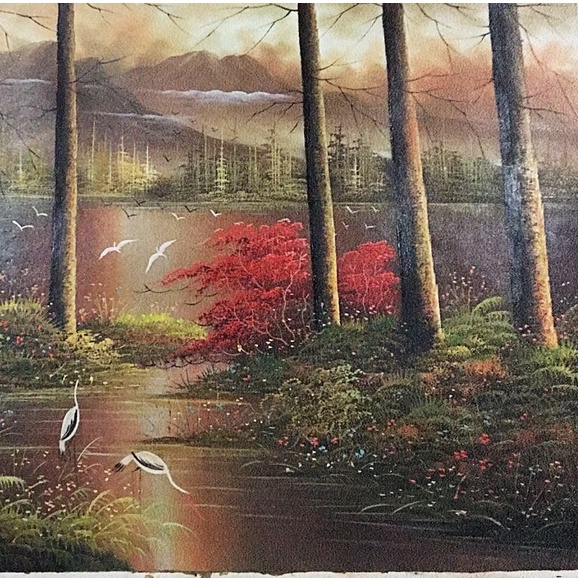Lukisan Pemandangan Alam Dengan Pepohonan, Danau, dan Nuansa Pegunungan Yang Langka