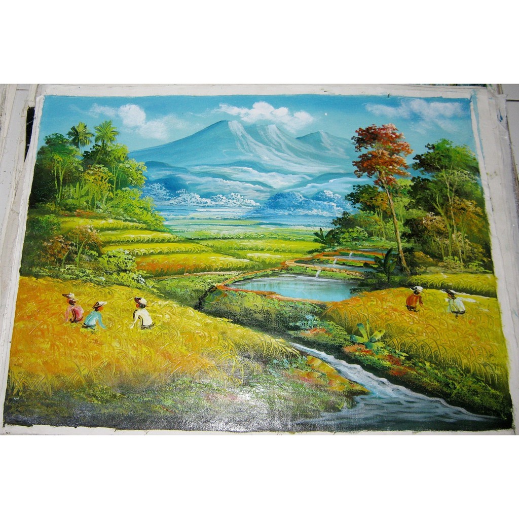 Lukisan Pemandangan Sawah dan Pegunungan yang Indah