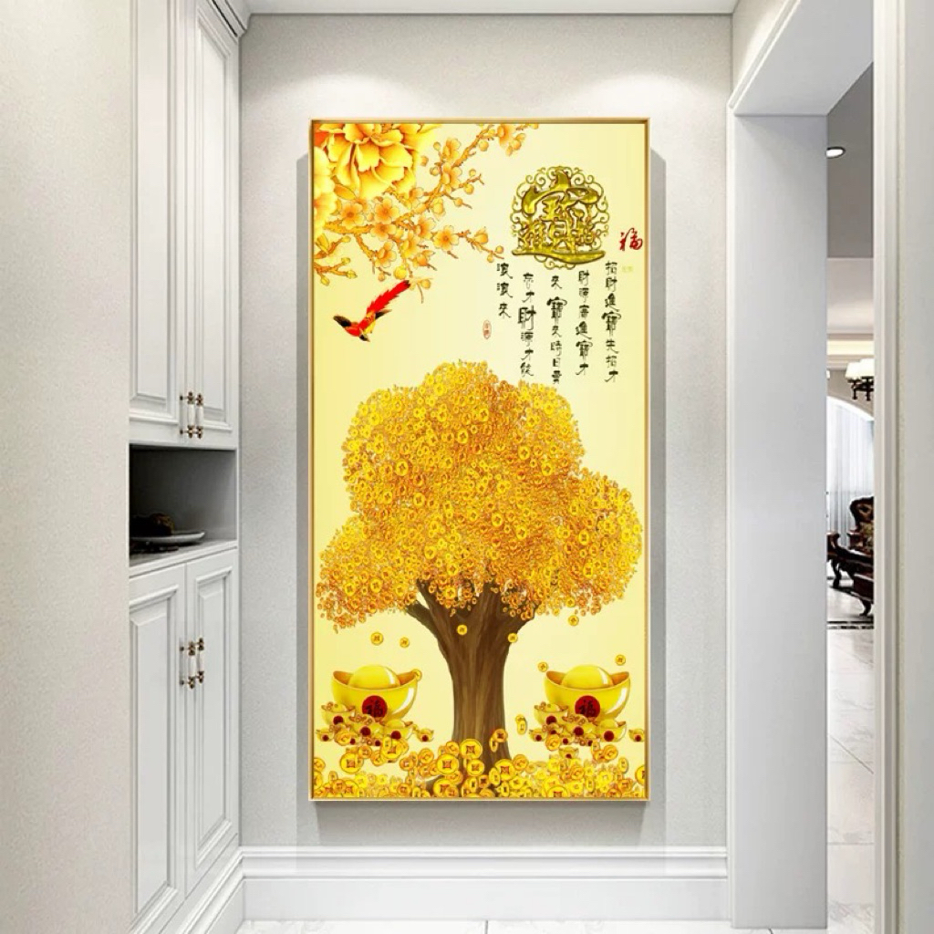 Lukisan Porcelain Painting 5D Diamond Motif Pohon Emas Motif Fengshui Bagus Lukisan Porselenn 5 Dimensi Lukisan Uang Lukisan Usaha Lukisan Keberuntungan Lukisan Hoki