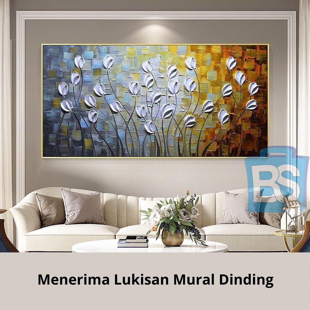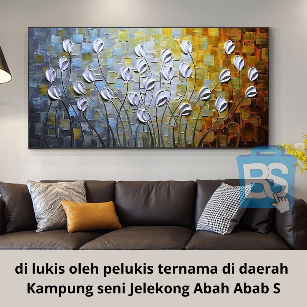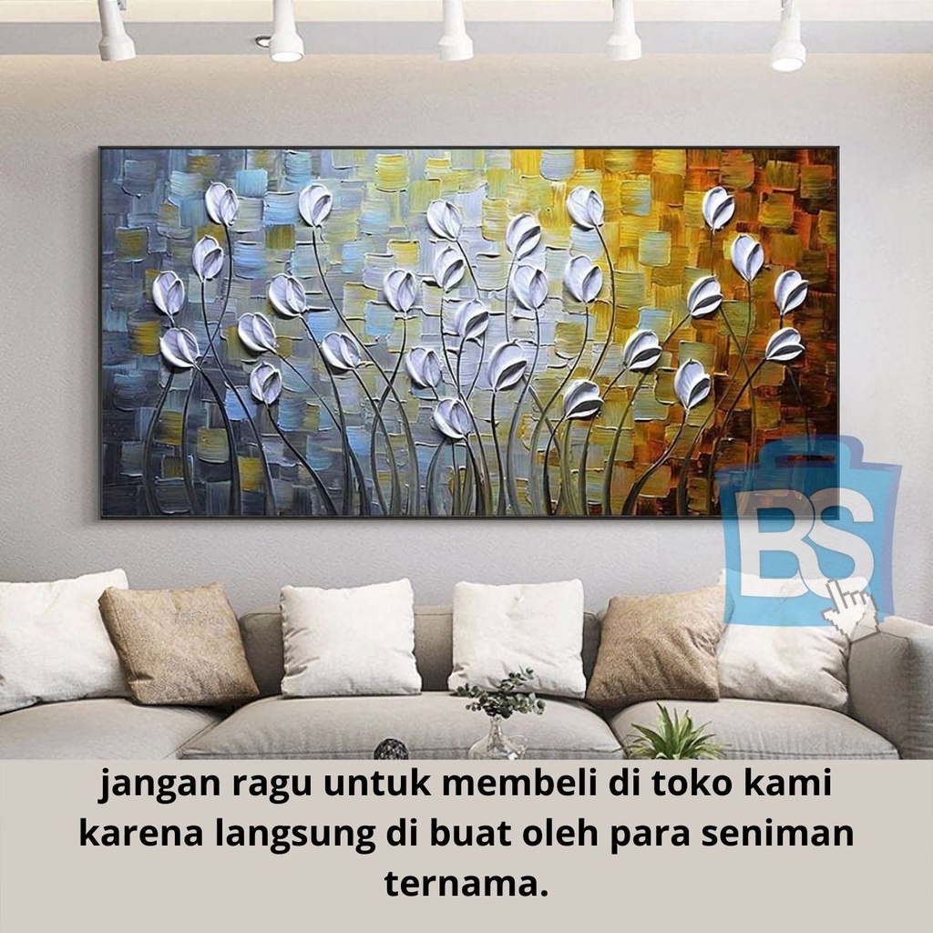 Lukisan Tulip Putih Lukisan Pemandangan Lukisan Bunga Di Atas Kanvas Dekorasi Ruang Tamu Tekstur Lukisan Pisau Lukisan Hutan Mural