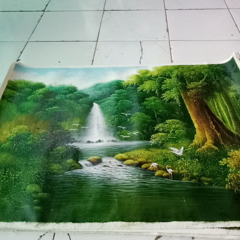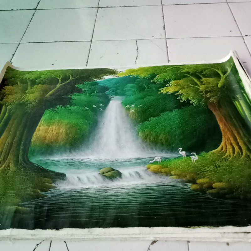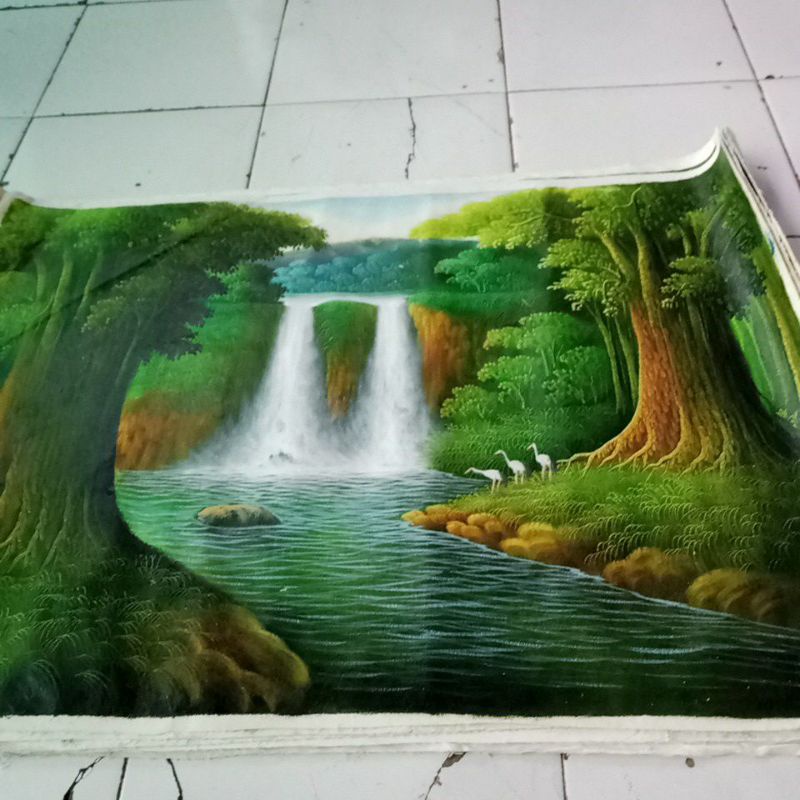 Lukisan air terjun alam indah