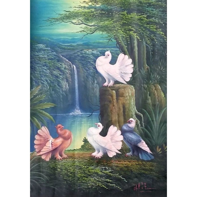 Lukisan burung merpati | Lukisan alam | Lukisan Bali | Lukisan indah