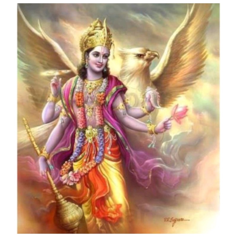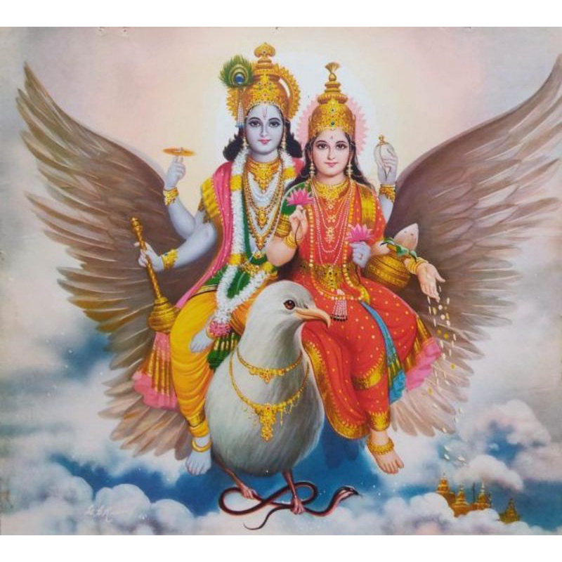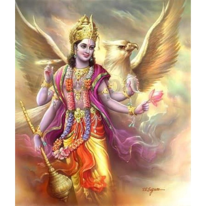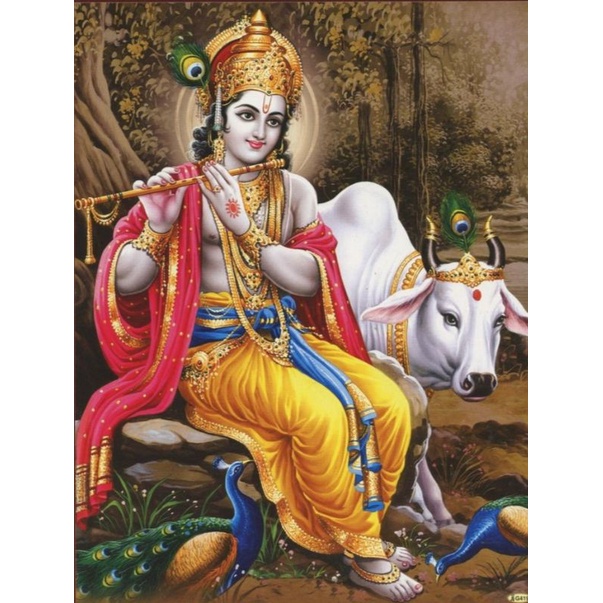 Lukisan cetak murah gambar Dewa Krisna plus bingkai uk 65x45