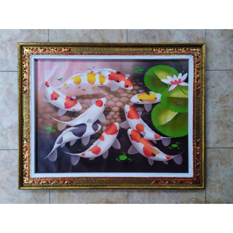 Lukisan ikan koi lengkap dengan bingkai Bali