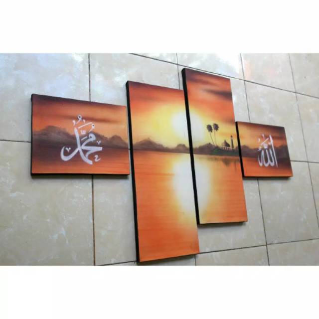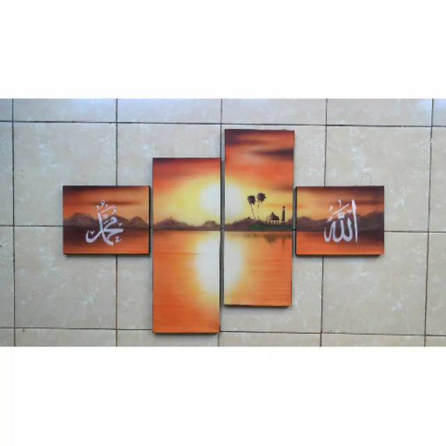 Lukisan tangan kaligrafi muslim hiasan dinding motif senja
