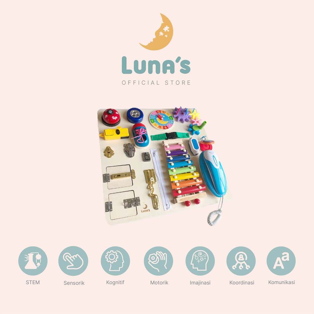 Luna's Busy Board Komplit Puzzle Kayu Mainan Stem Mainan Edukasi Anak