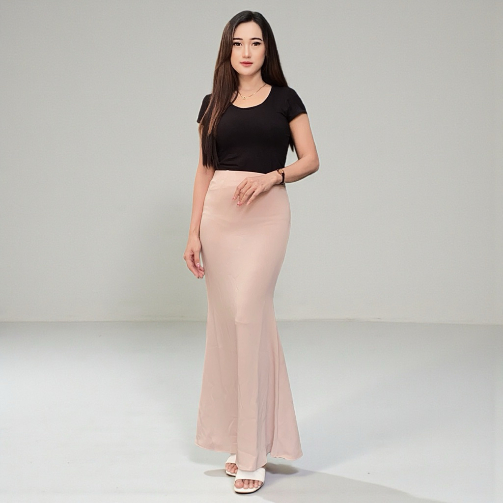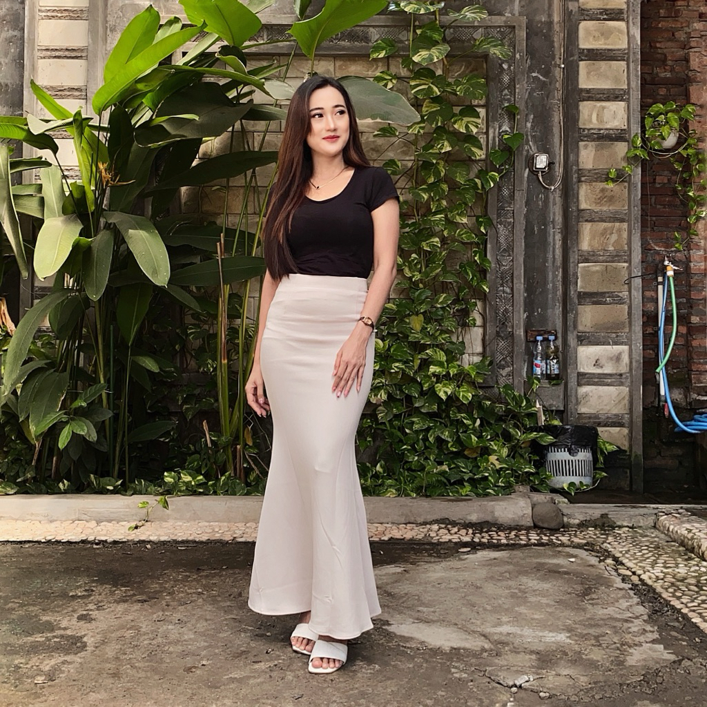 Lunar Mermaid Skirt - Rok Flare Wanita -Mermaid Skirt basic polos - Mermaid Maxi Korean Style Anti Kusut - Rok Panjang Wanita