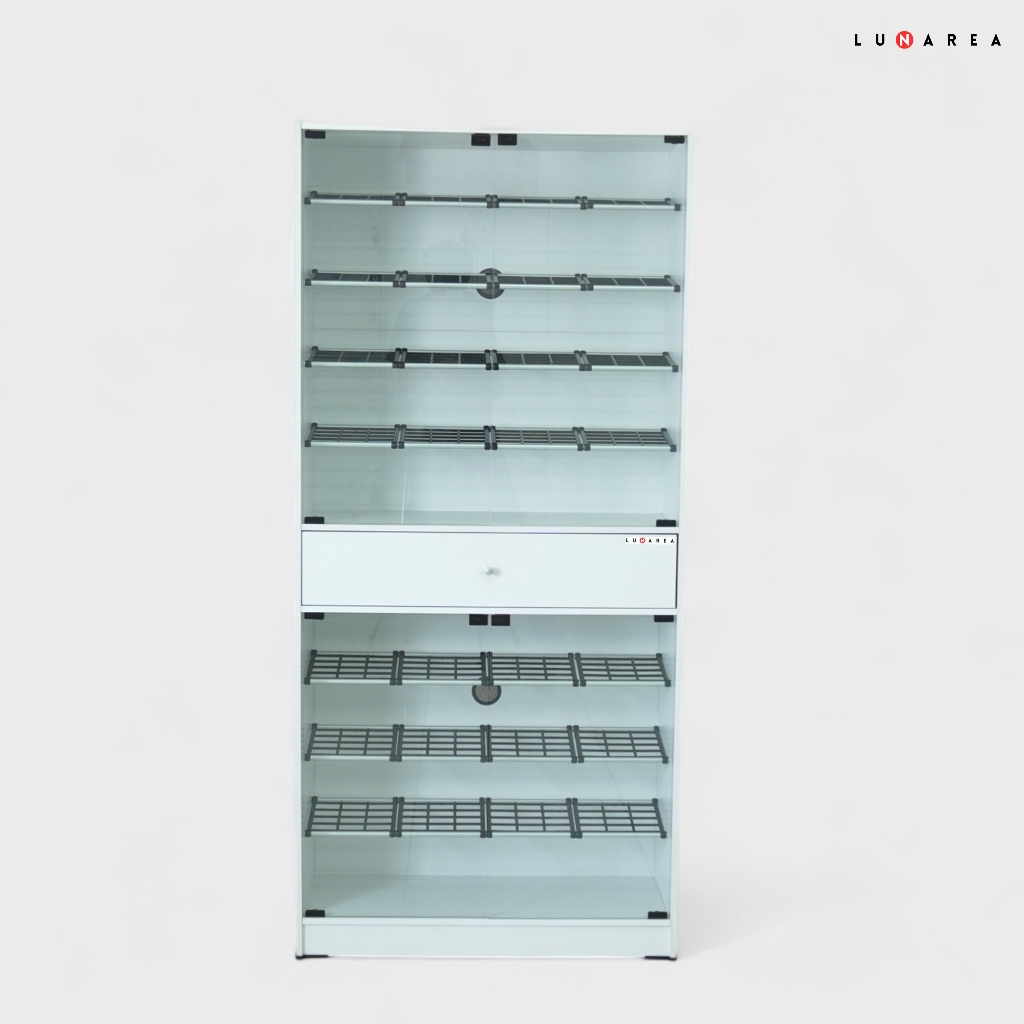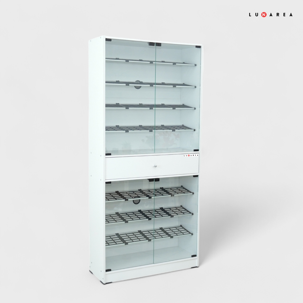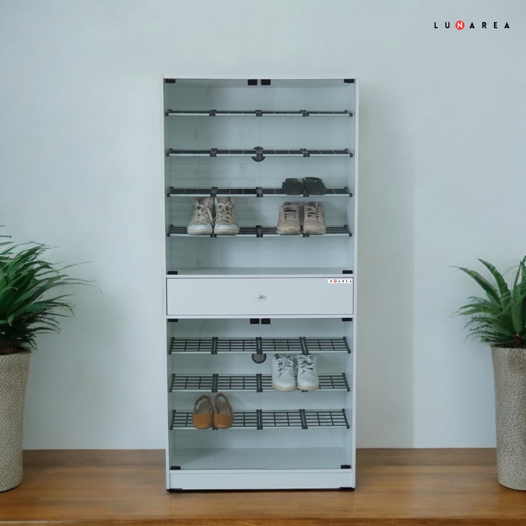 Lunarea Furniture - RSS 8070 Rak Sepatu - Tempat Sepatu - Penyimpanan Sepatu Minimalis Dengan Laci Penyimpanan Dan Pintu Kaca - Rak Sepatu Keluarga - Rak Sepatu 2 Tingkat