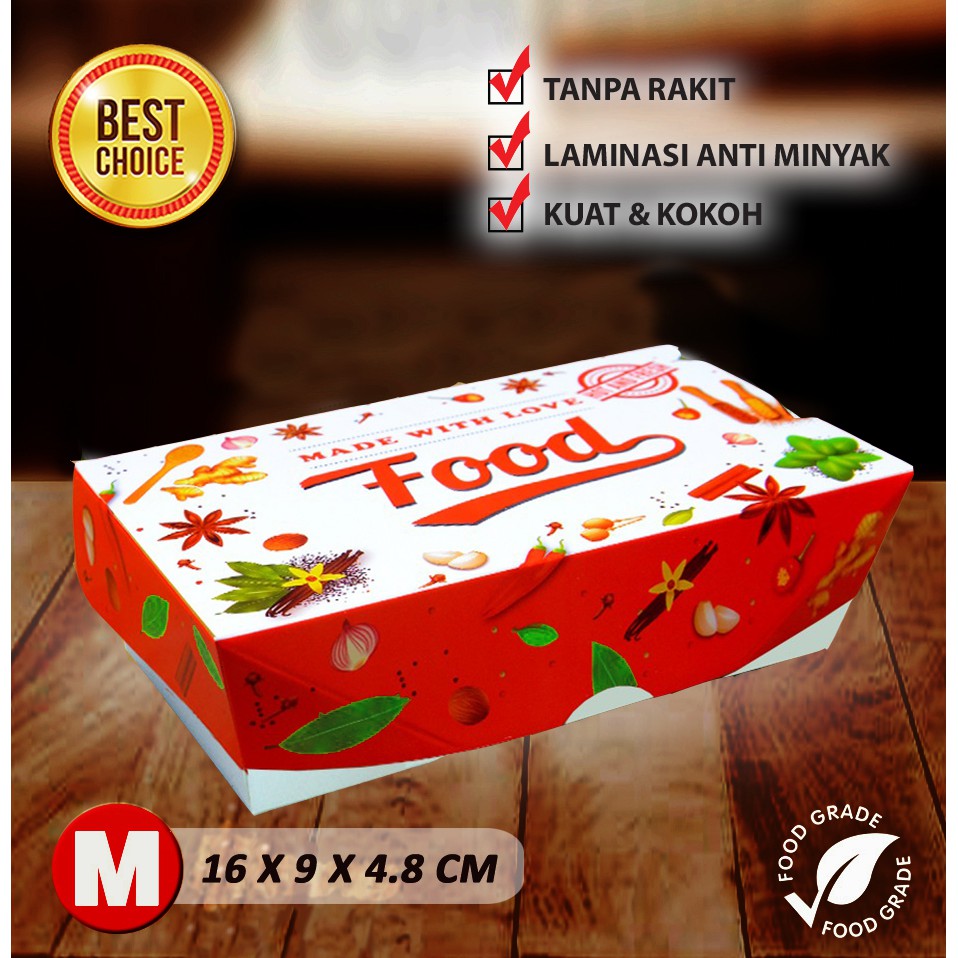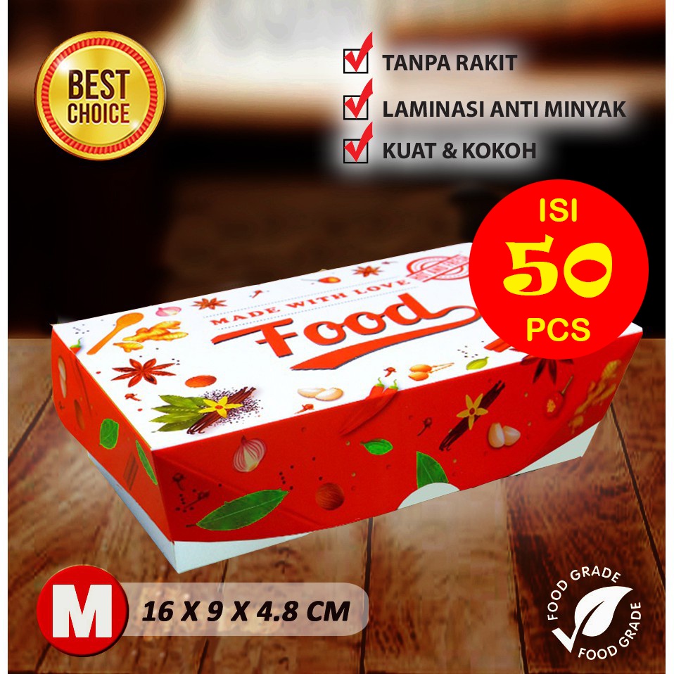 Lunch Box - Lunch Box Paper - FOOD | MERAH | Medium (M) - (50 Pcs)