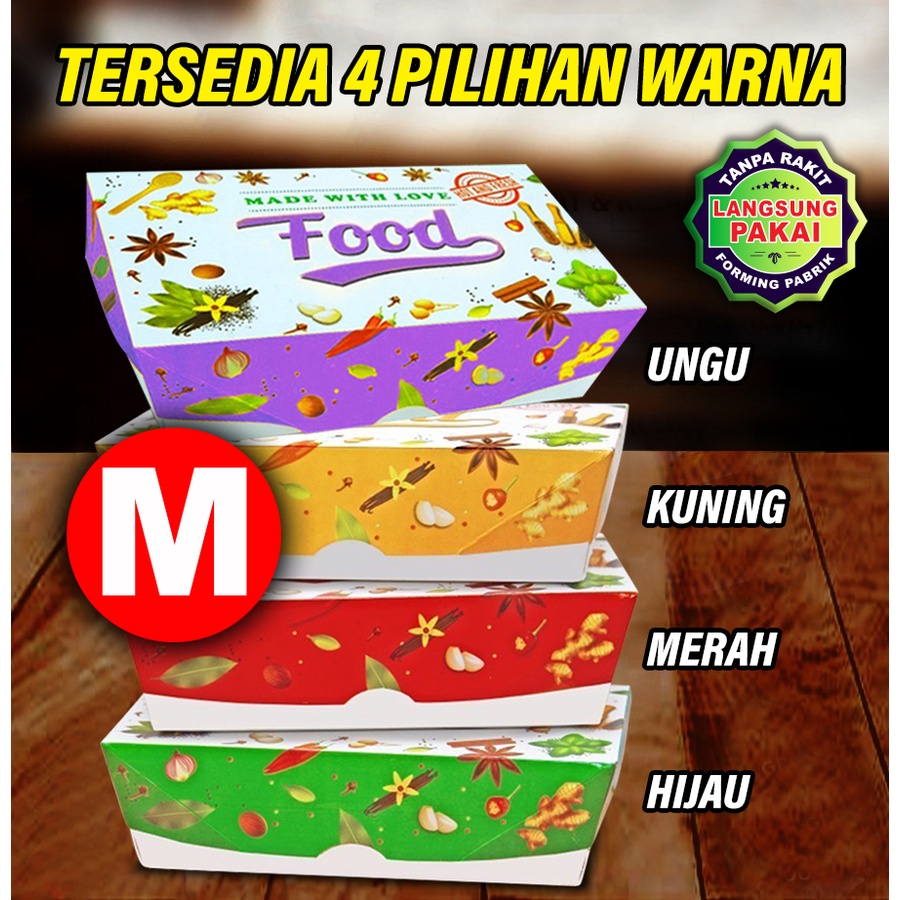 Lunch Box Paper FOOD - VARIASI WARNA | (M) MEDIUM ( 50 pc )