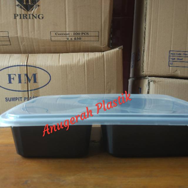 Lunch Box Sekat 4 + Tutup Merek FIM WARNA HITAM HARGA 25 PCS