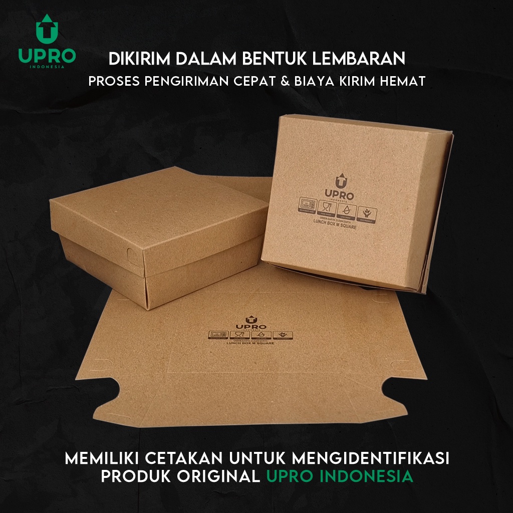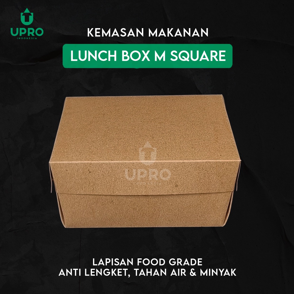Lunch Box Ukuran M Square Isi 50 Dus Kotak Makan Paper Lunch Box Size M Square Take Away Box Laminasi Tebal 290 gsm Paper Kraft Coklat Food Grade - Upro Indonesia