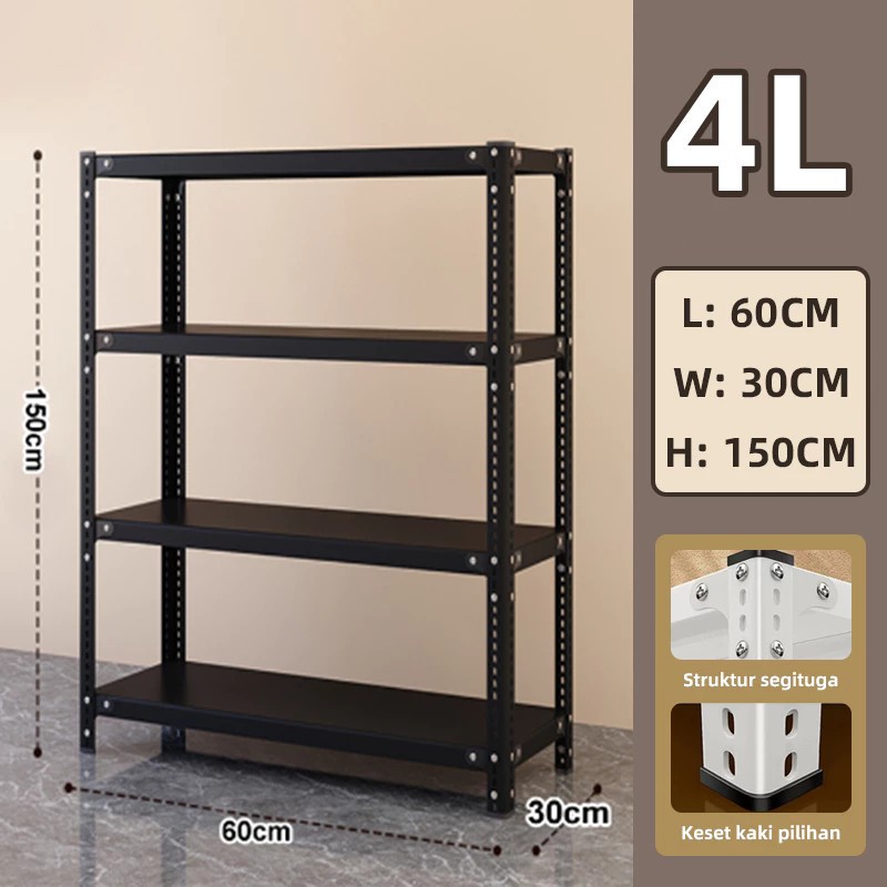 LuvHome Rak 4/5 Susun Rak Besi Siku Lubang Rak Gudang Rak Buku Minimalis Rak Besi Serbaguna